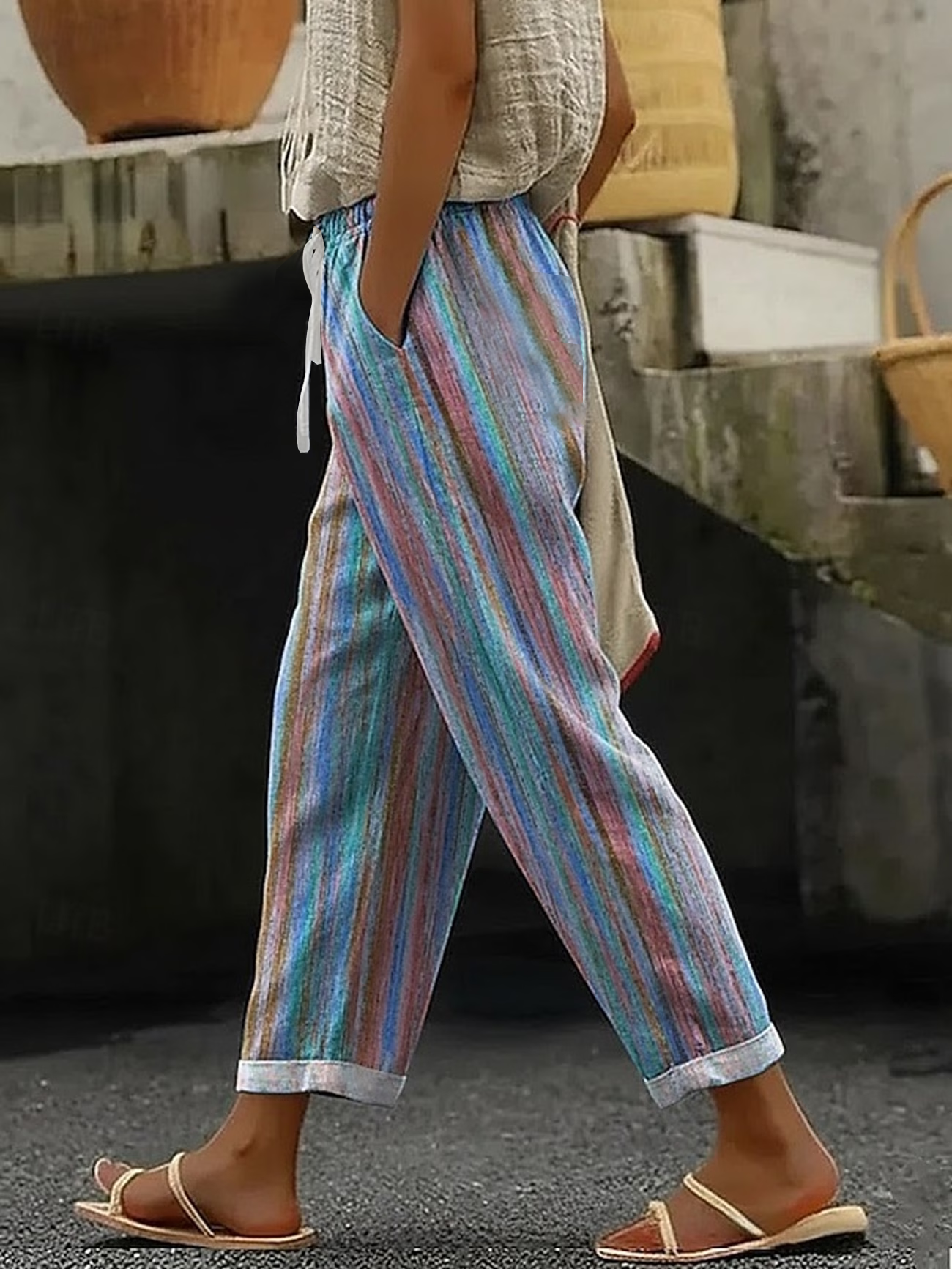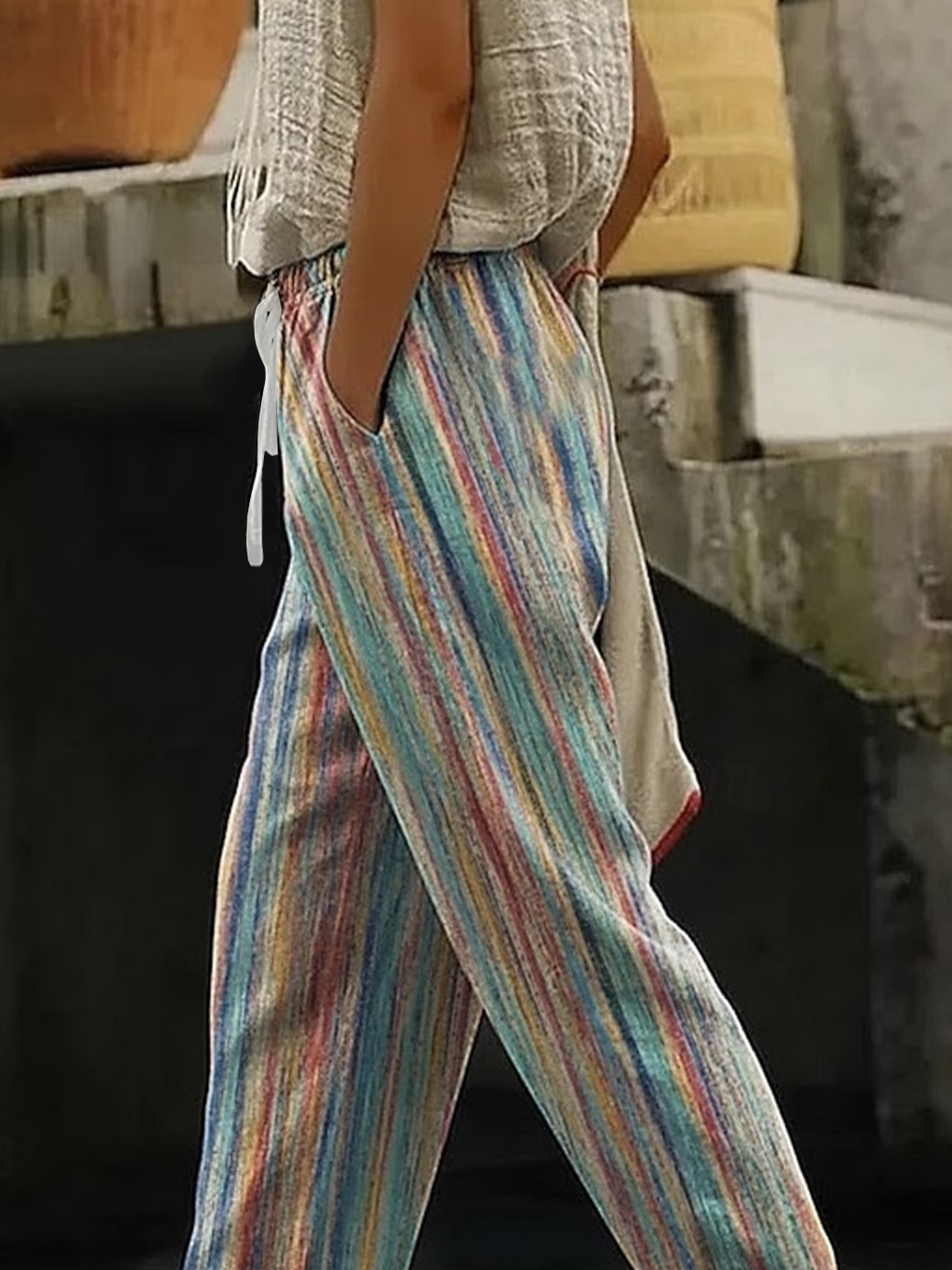 Women's H-Line Straight Pants Daily Going Out Pants As Picture Casual Printing Abstract Stripes Spring/Fall Pants