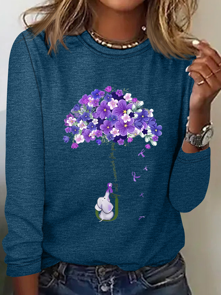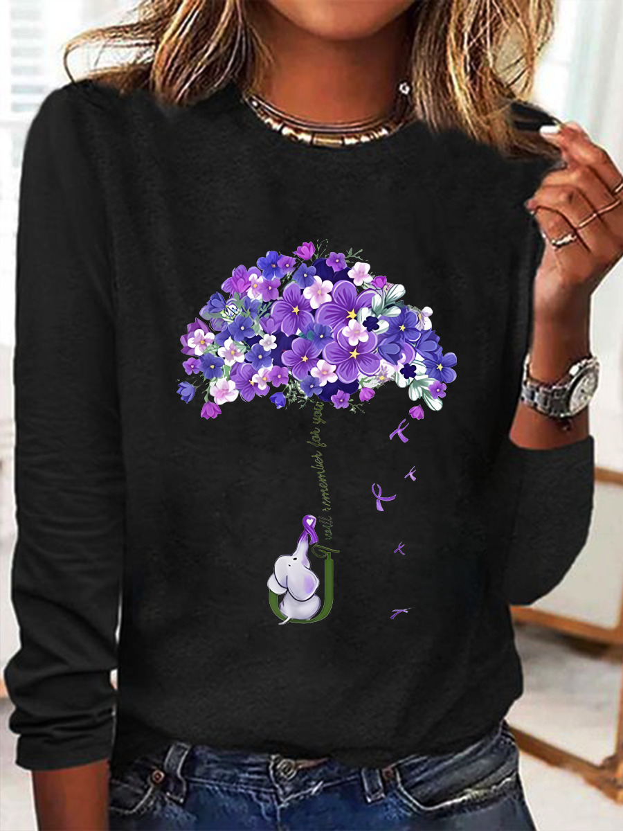 Women's I Will Remember For You Dementia Alzheimer's Disease Awareness Print Casual Long Sleeve Shirt