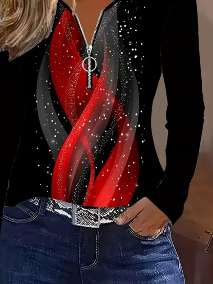 Women's Long Sleeve T-shirt Spring/Fall Black Abstract Printing V Neck Daily Going Out Vintage Top