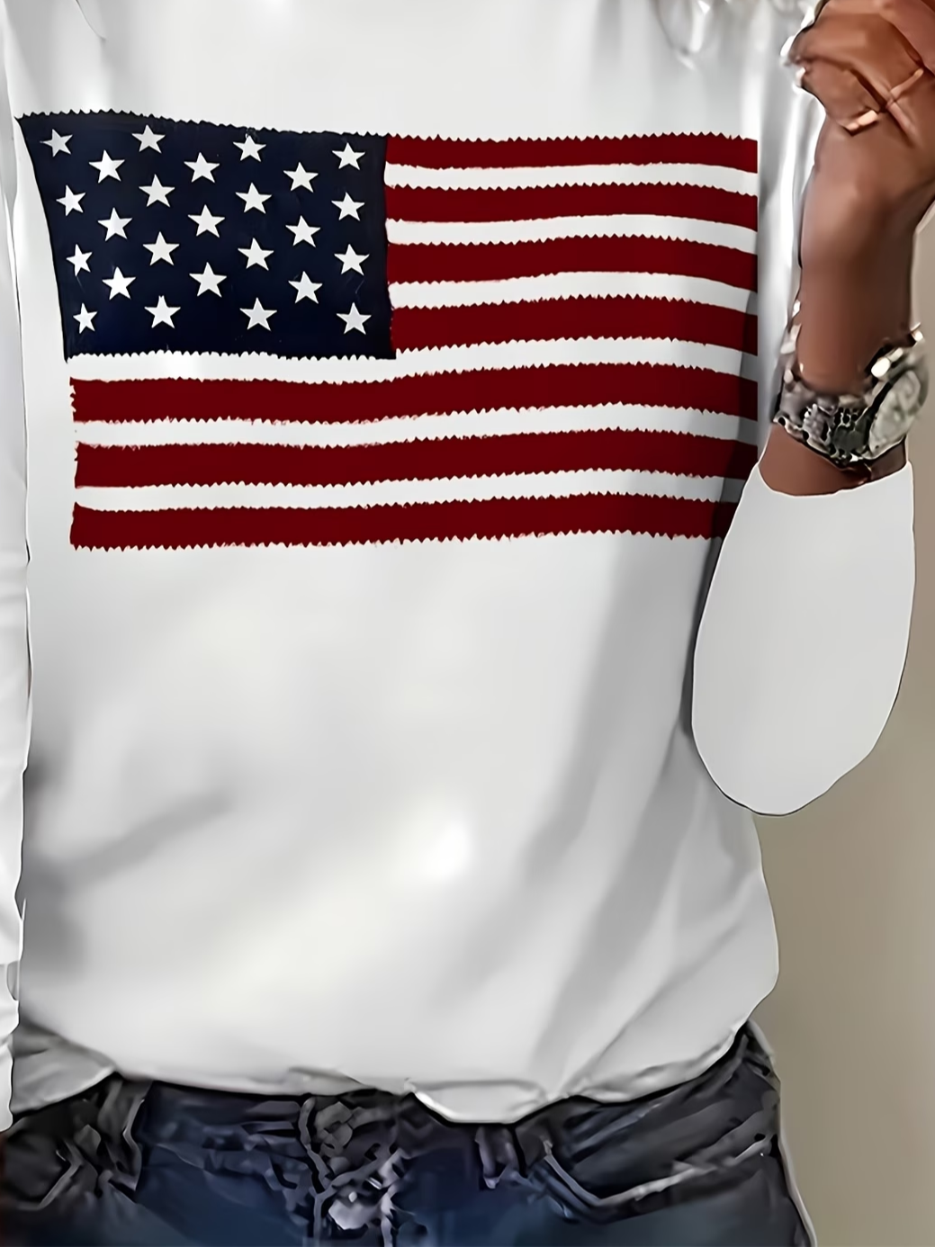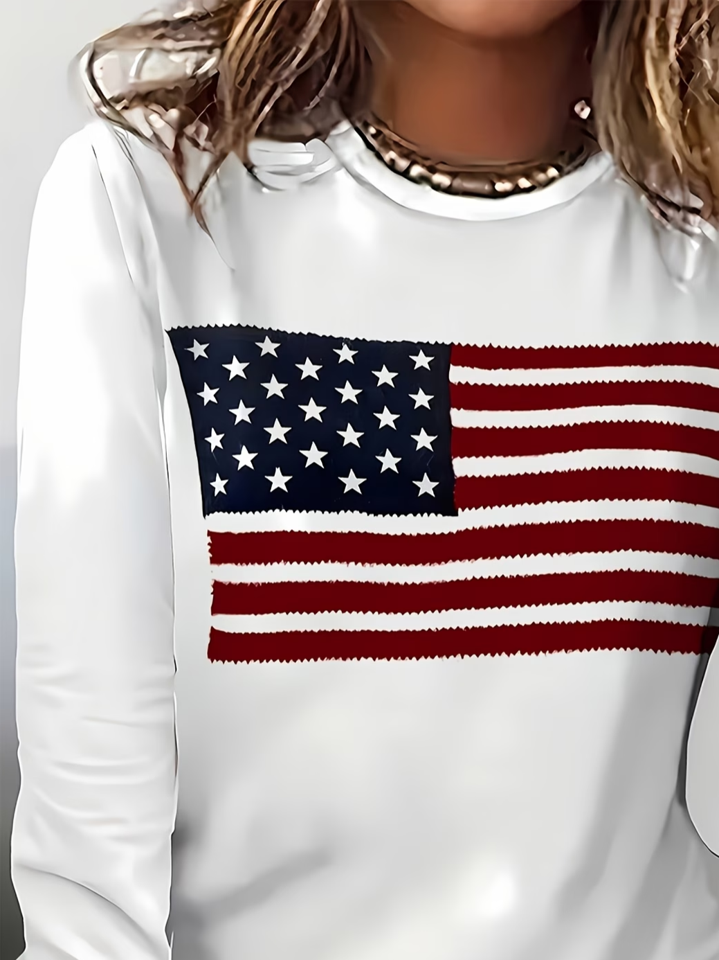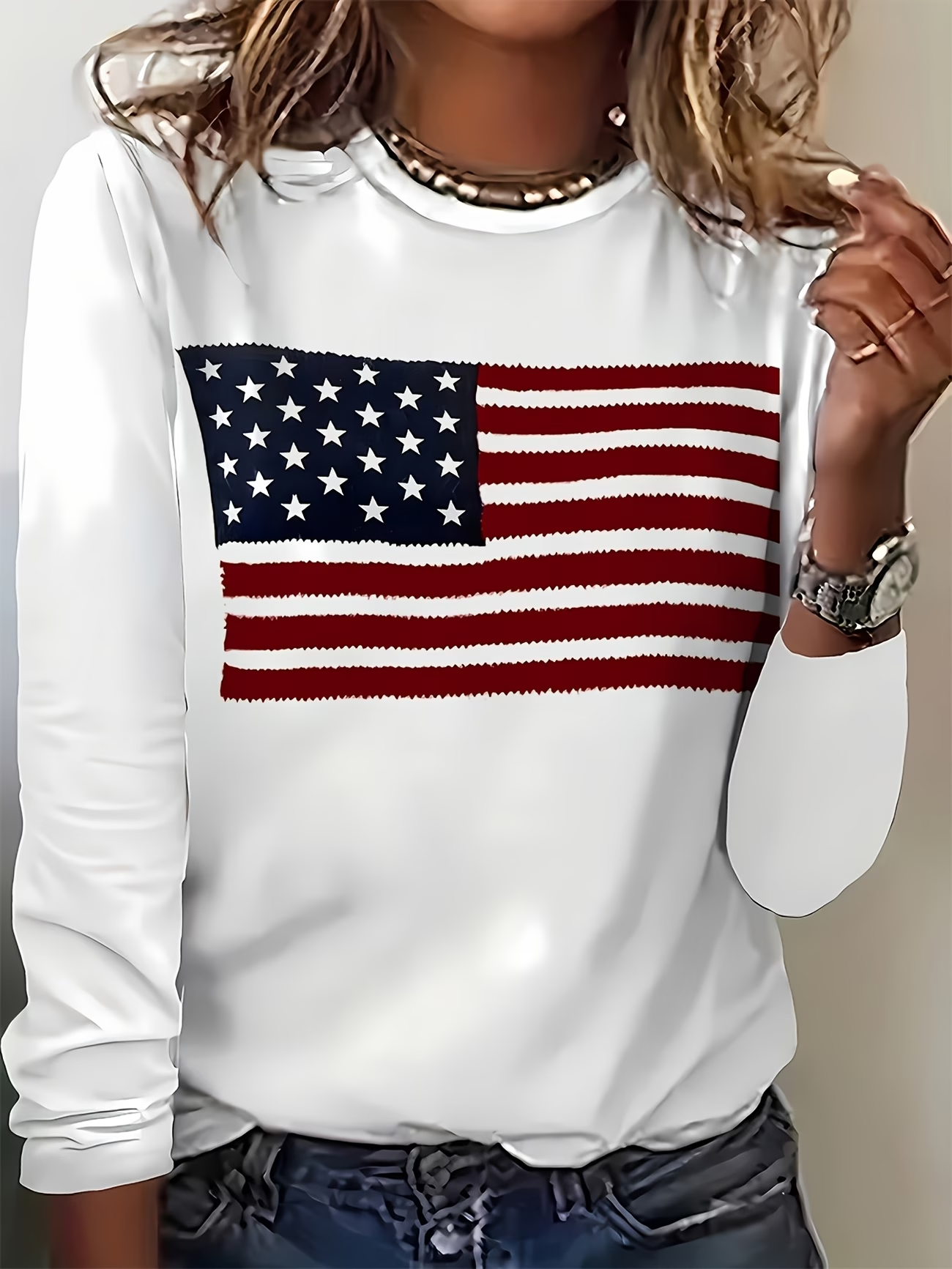 Women's Long Sleeve T-shirt Spring/Fall White America Flag Printing Jersey Crew Neck Daily Going Out Casual Top