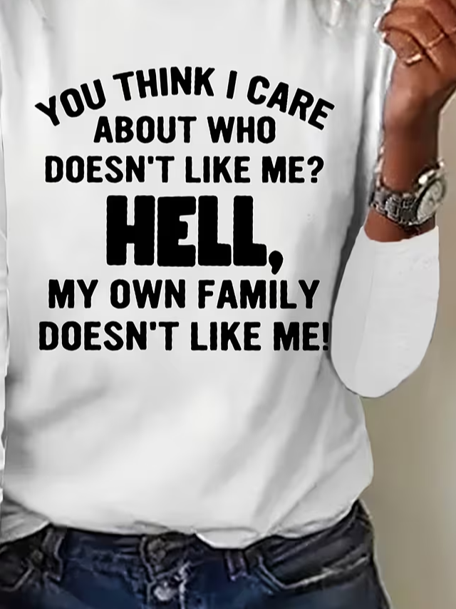 Women's Long Sleeve T-shirt Spring/Fall White Text Letters Printing Jersey Crew Neck Daily Going Out Casual Top