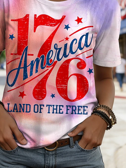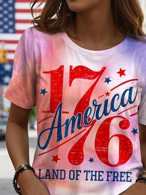 Women's Short Sleeve T-shirt Summer As Picture Independence Day (Flag) Printing Jersey Crew Neck Daily Going Out Casual Top