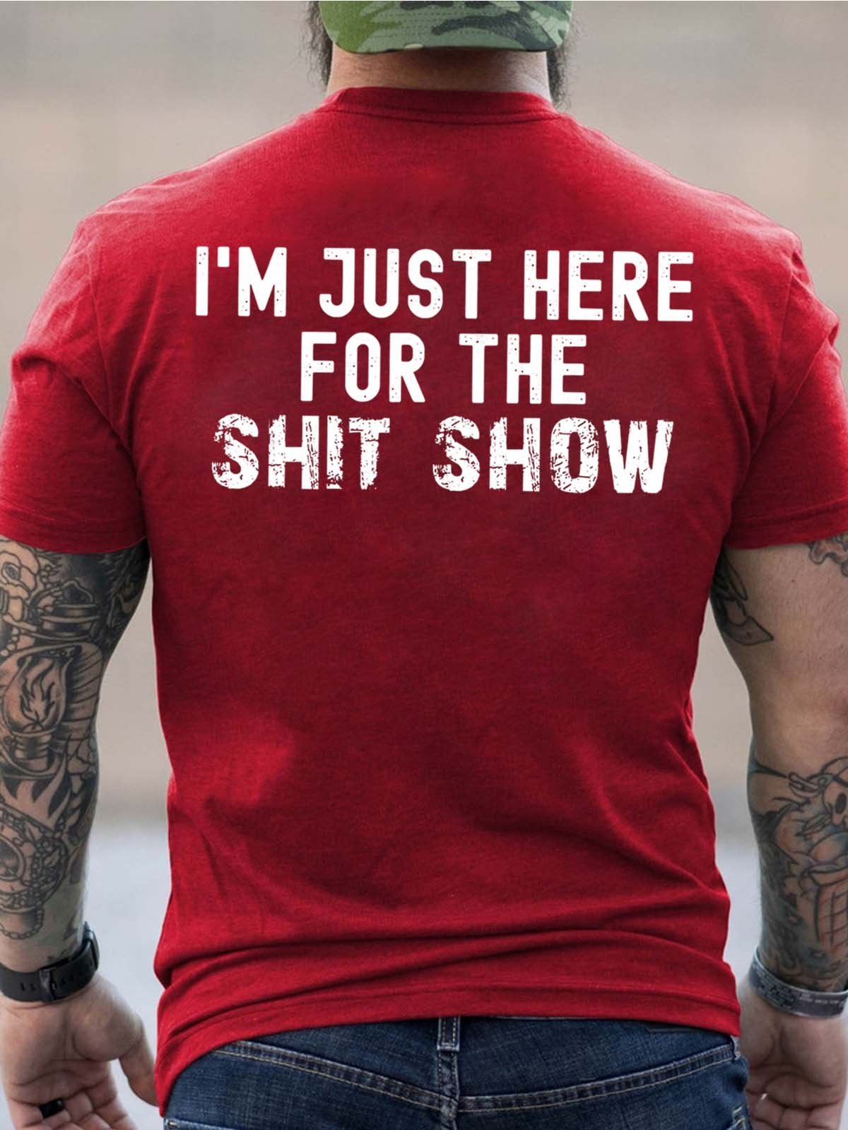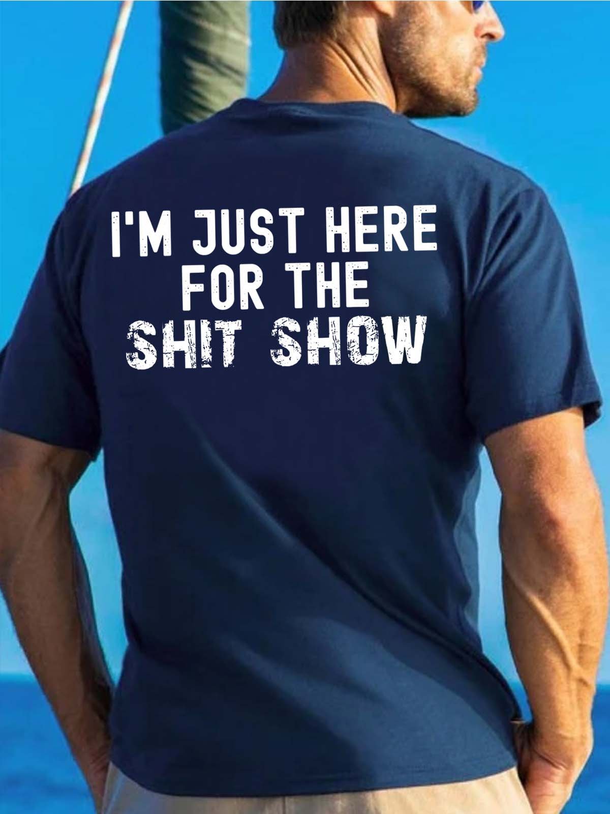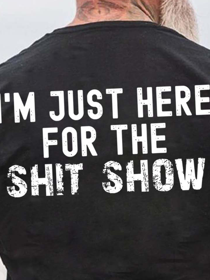 Men Just Here For The Shit Show Casual Text Letters Loose T-Shirt