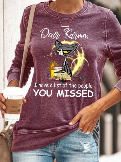 Womens Funny Dear Karma I Have A List Casual Sweatshirt