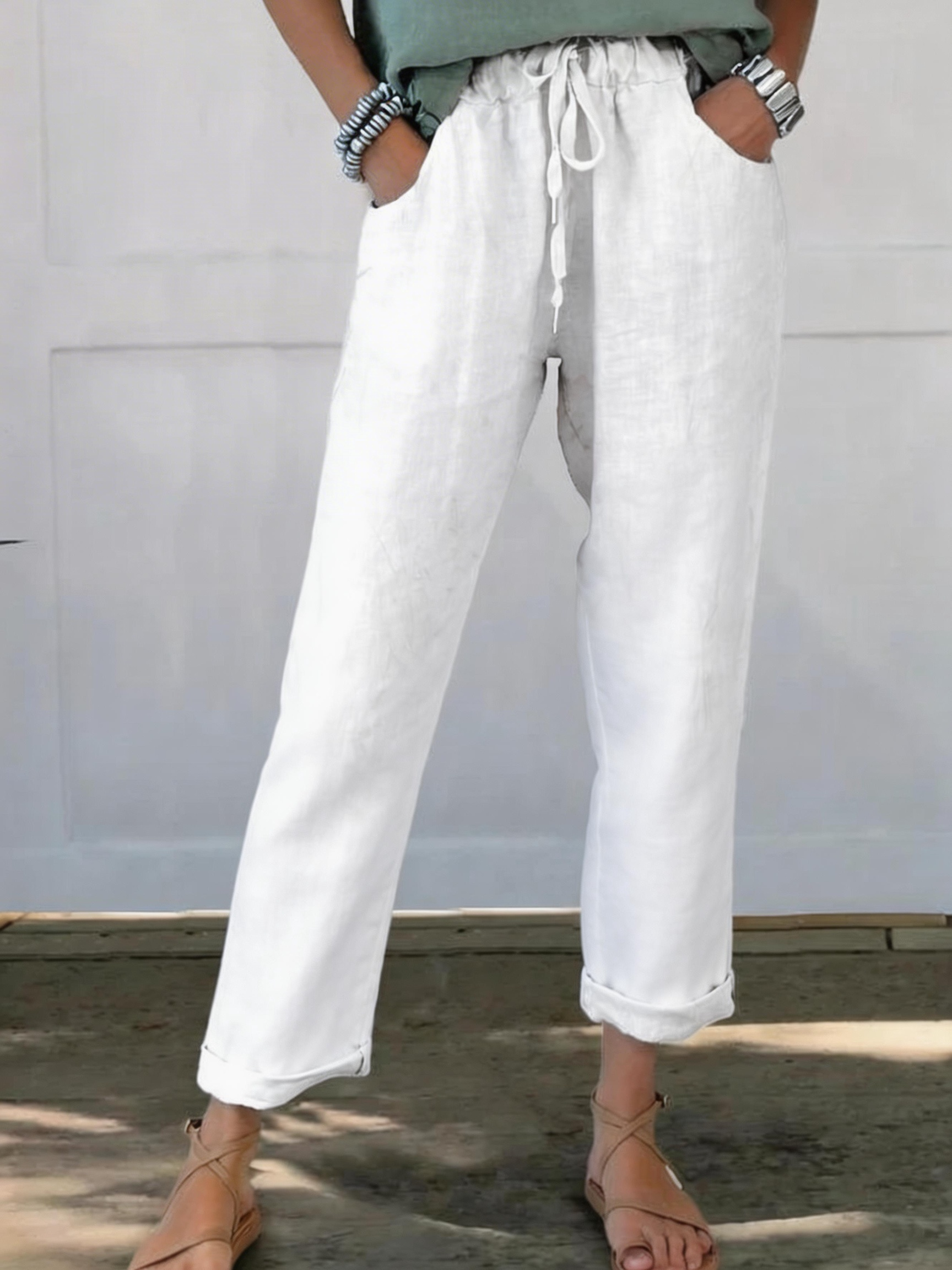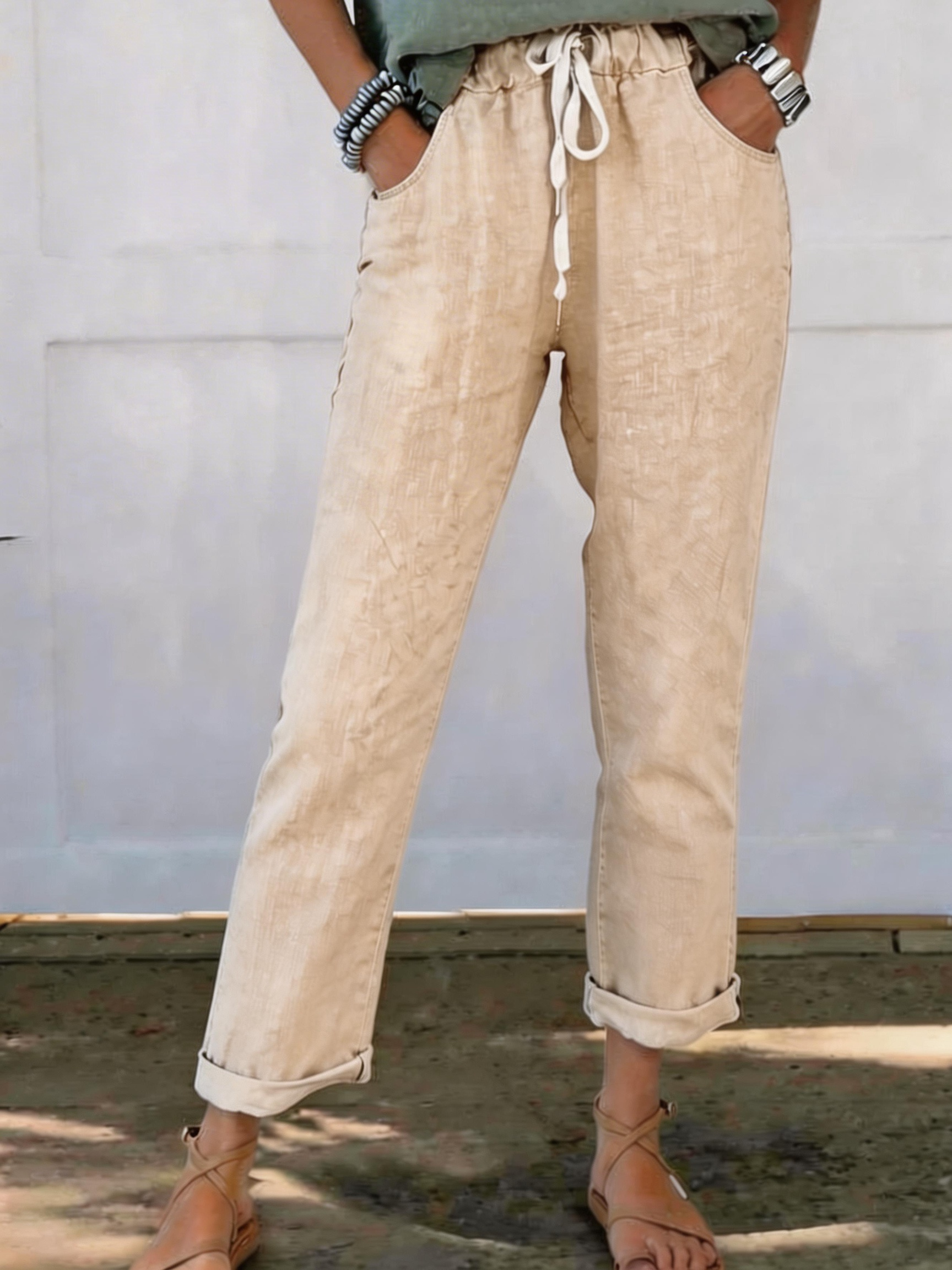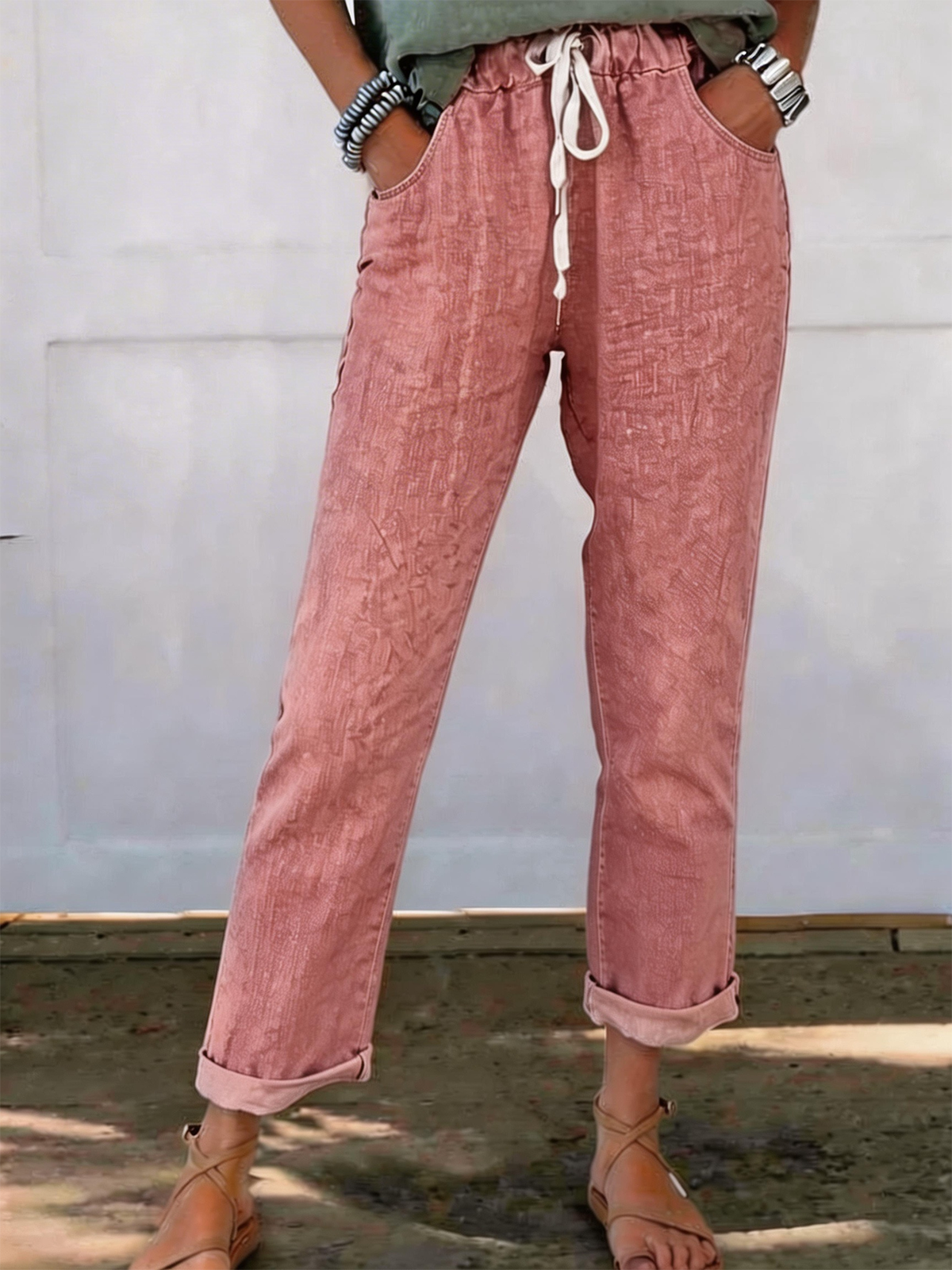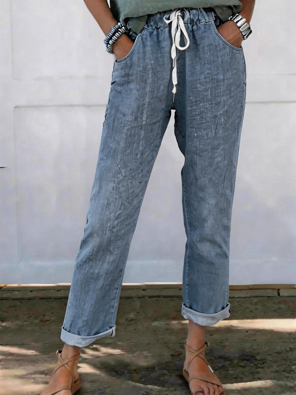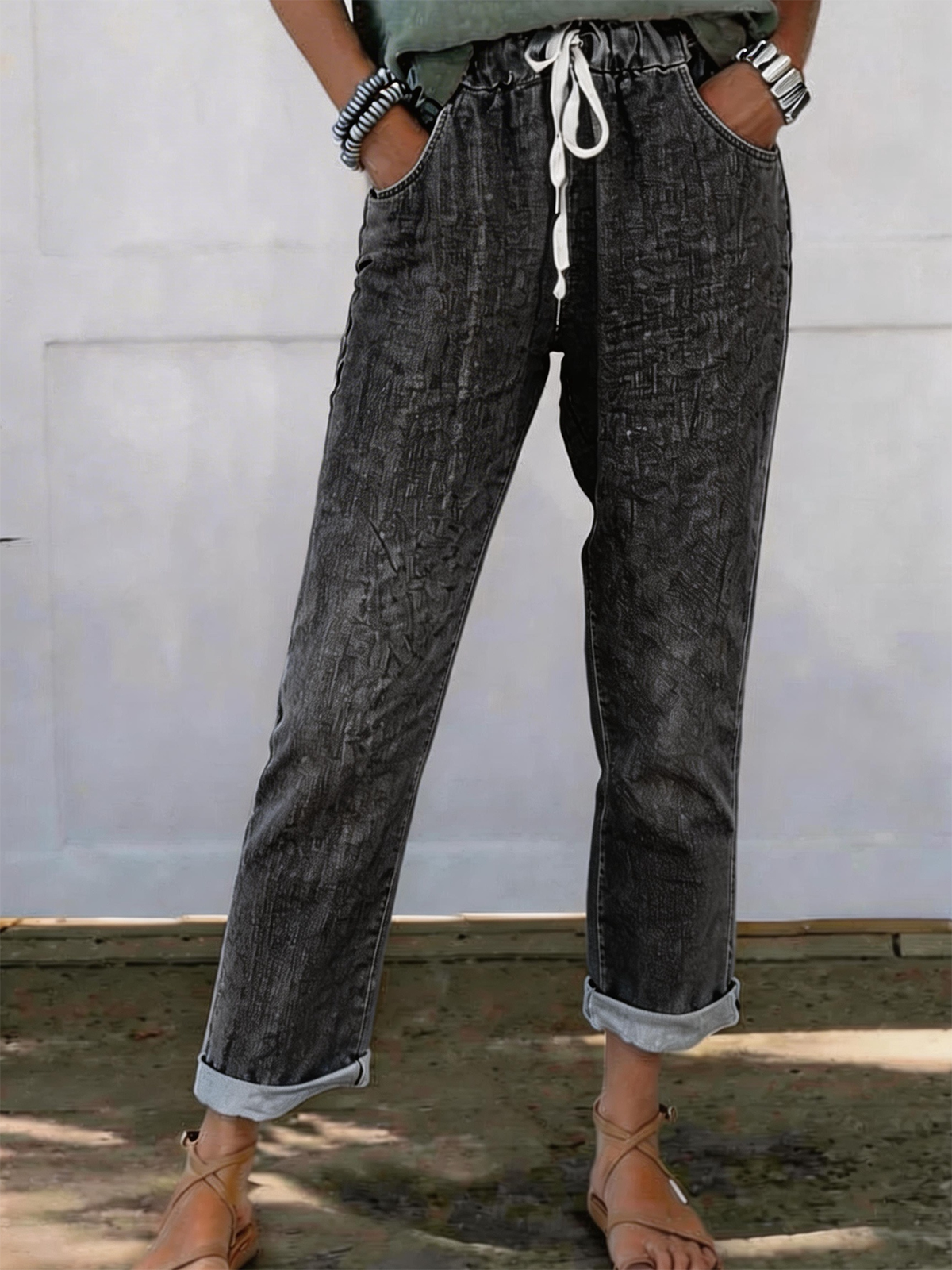 Linen Blend Faux Denim Print Graphic Vintage Pants