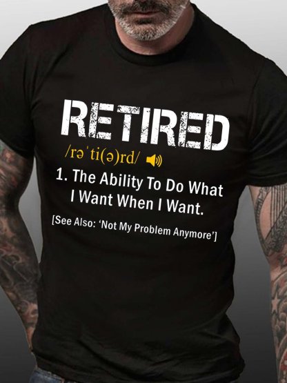 Men Retired To Do What I Want Text Letters Casual T-Shirt