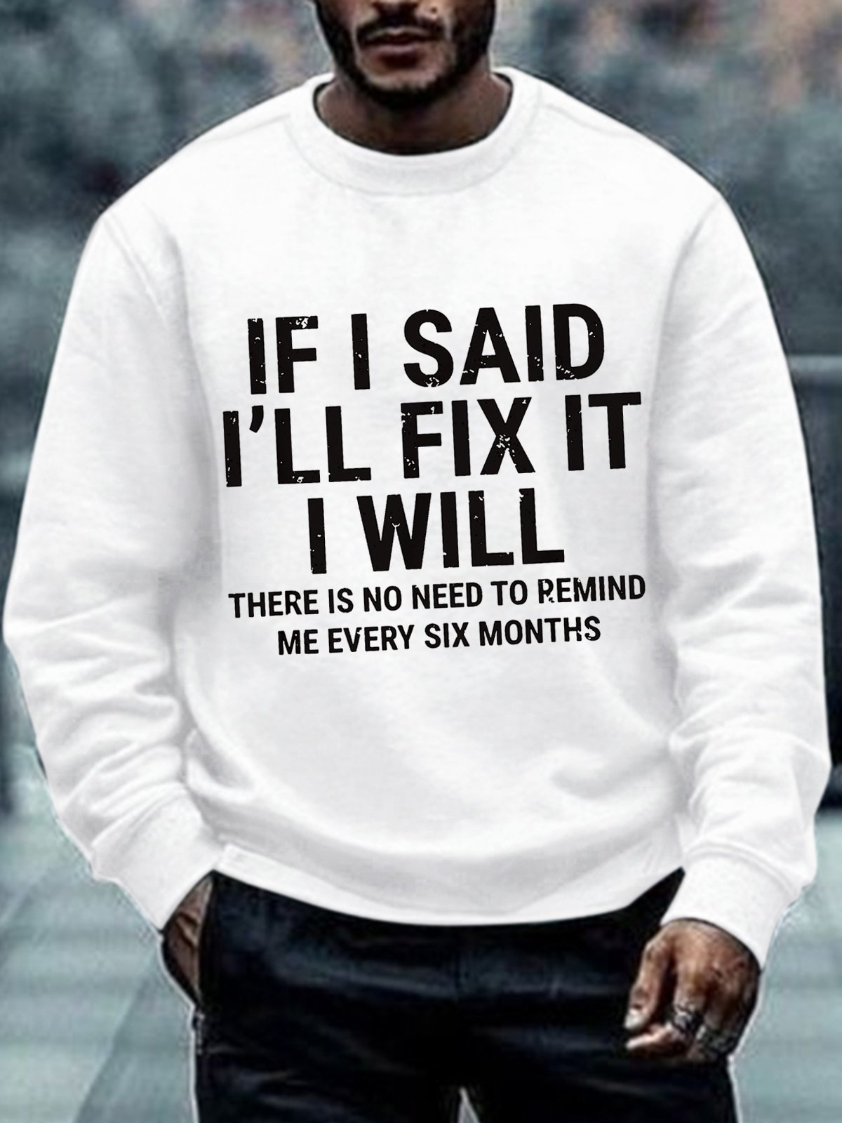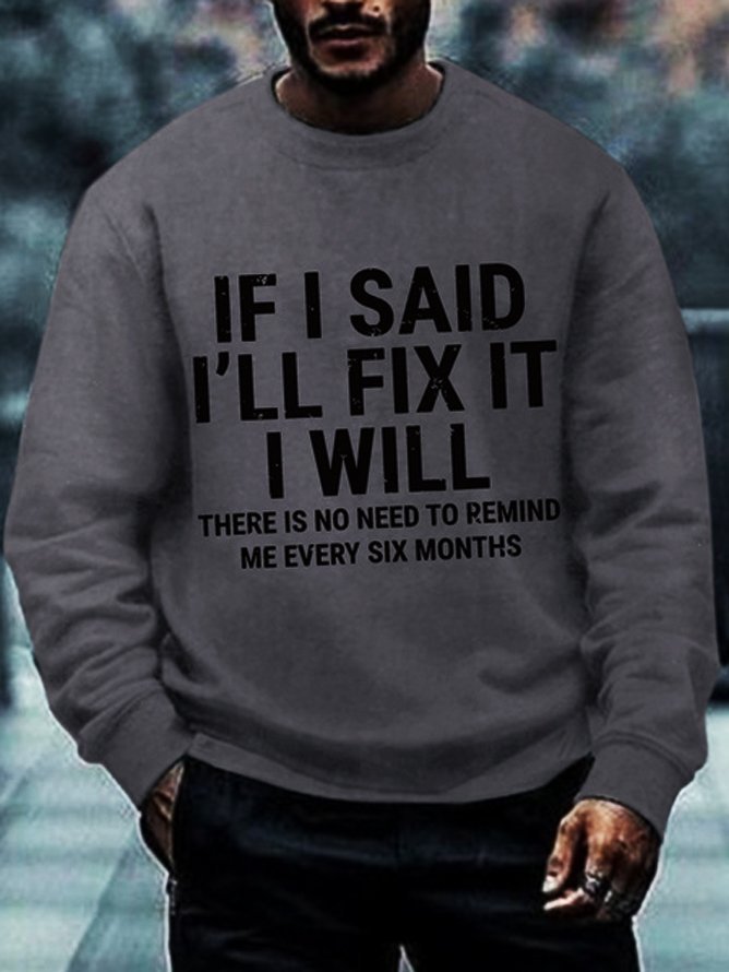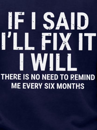 Men's Funny If I Said I'll Fix It I Will There Is No Need To Remind Me Every Six Months Crew Neck Sweatshirt