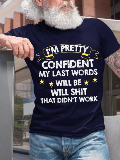 Men Funny I'm Pretty Confident My Last Words Will Be Well Didn’t Work Text Letters T-Shirt