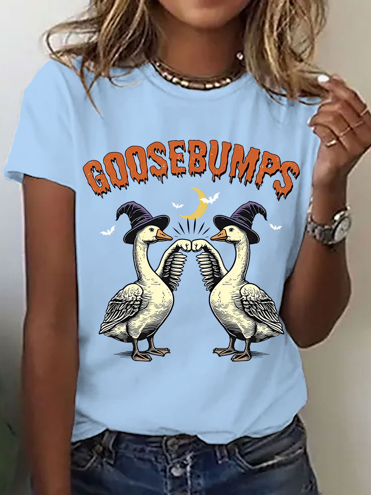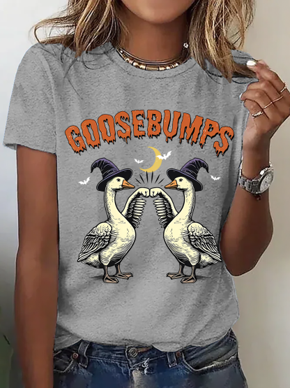 Women's Funny Goose Bumps Halloween,Retro Goose T-Shirt