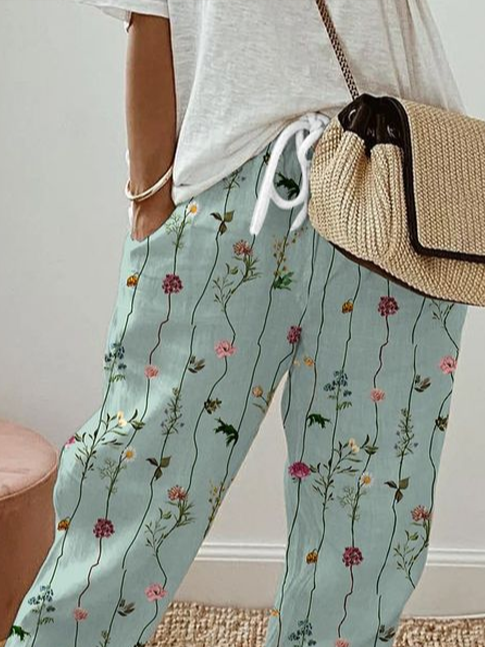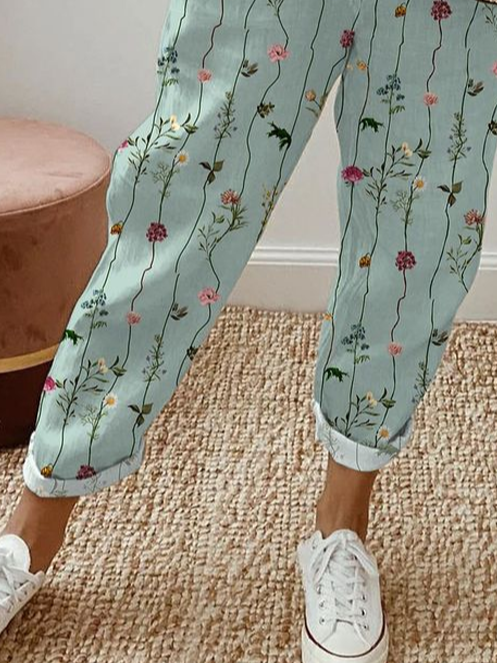 Women's H-Line Straight Pants Daily Going Out Pants Green Casual Printing Floral Spring/Fall Pants