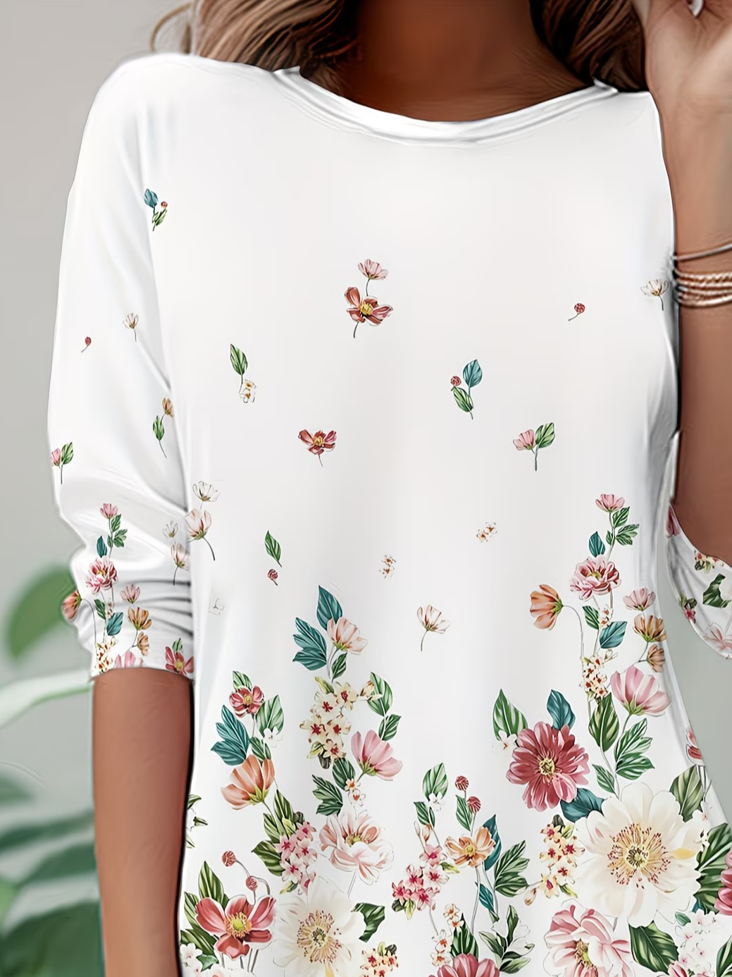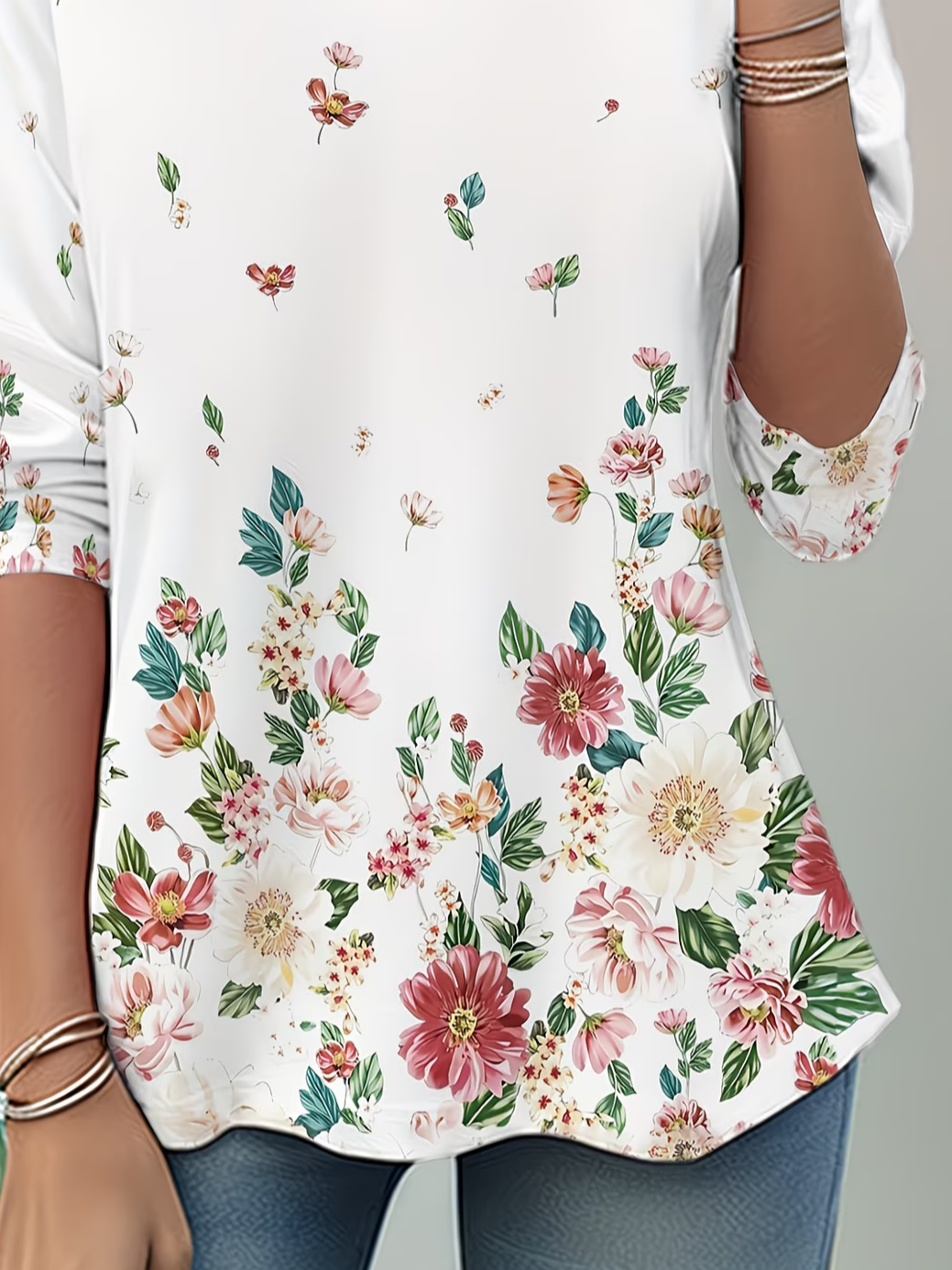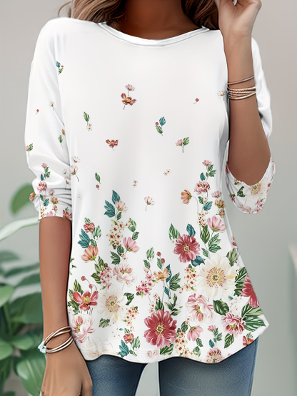 Women's Long Sleeve T-shirt Spring/Fall White Floral Jersey Crew Neck Daily Going Out Casual Top