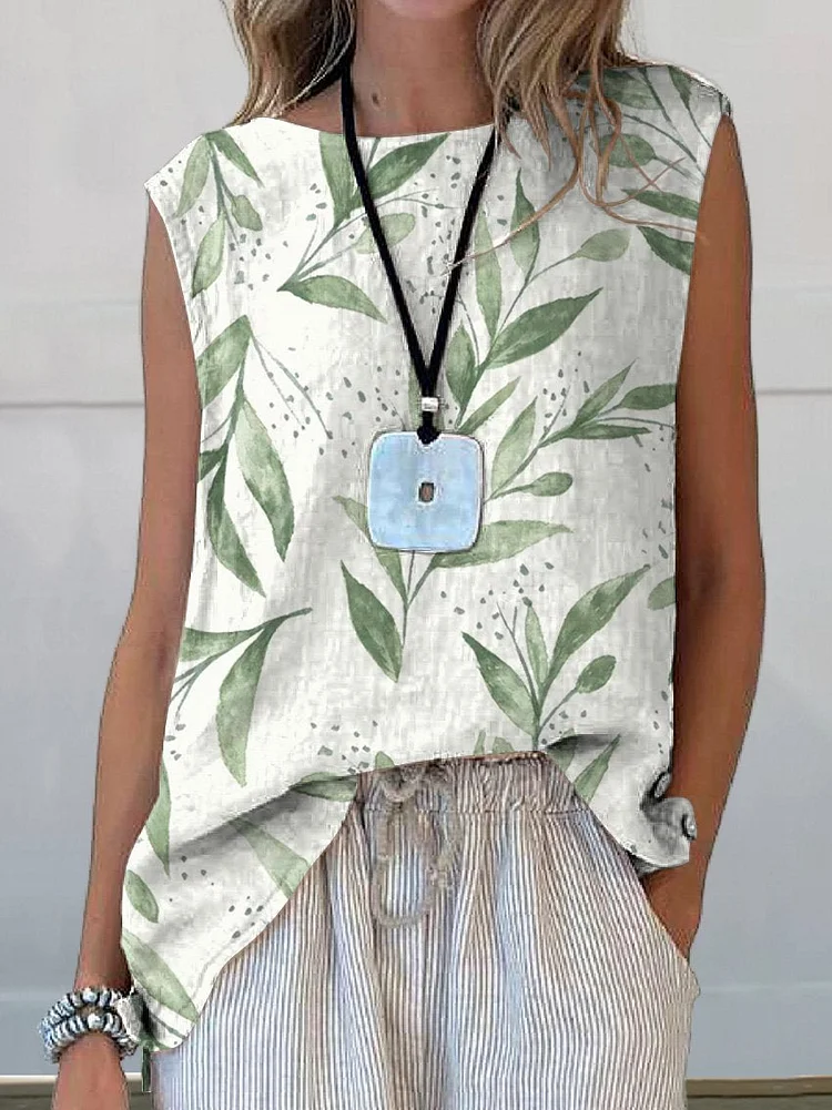 Women's Sleeveless Tank Top Summer White Floral Printing Crew Neck Daily Going Out Casual Top