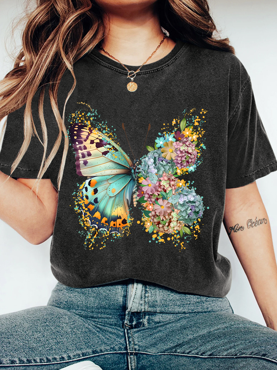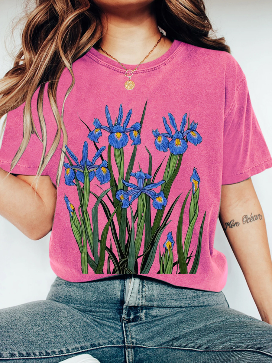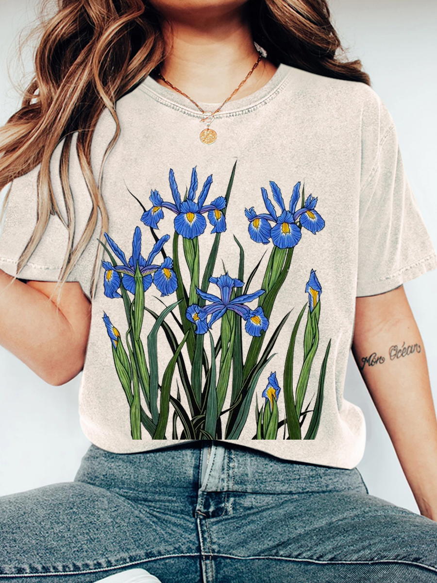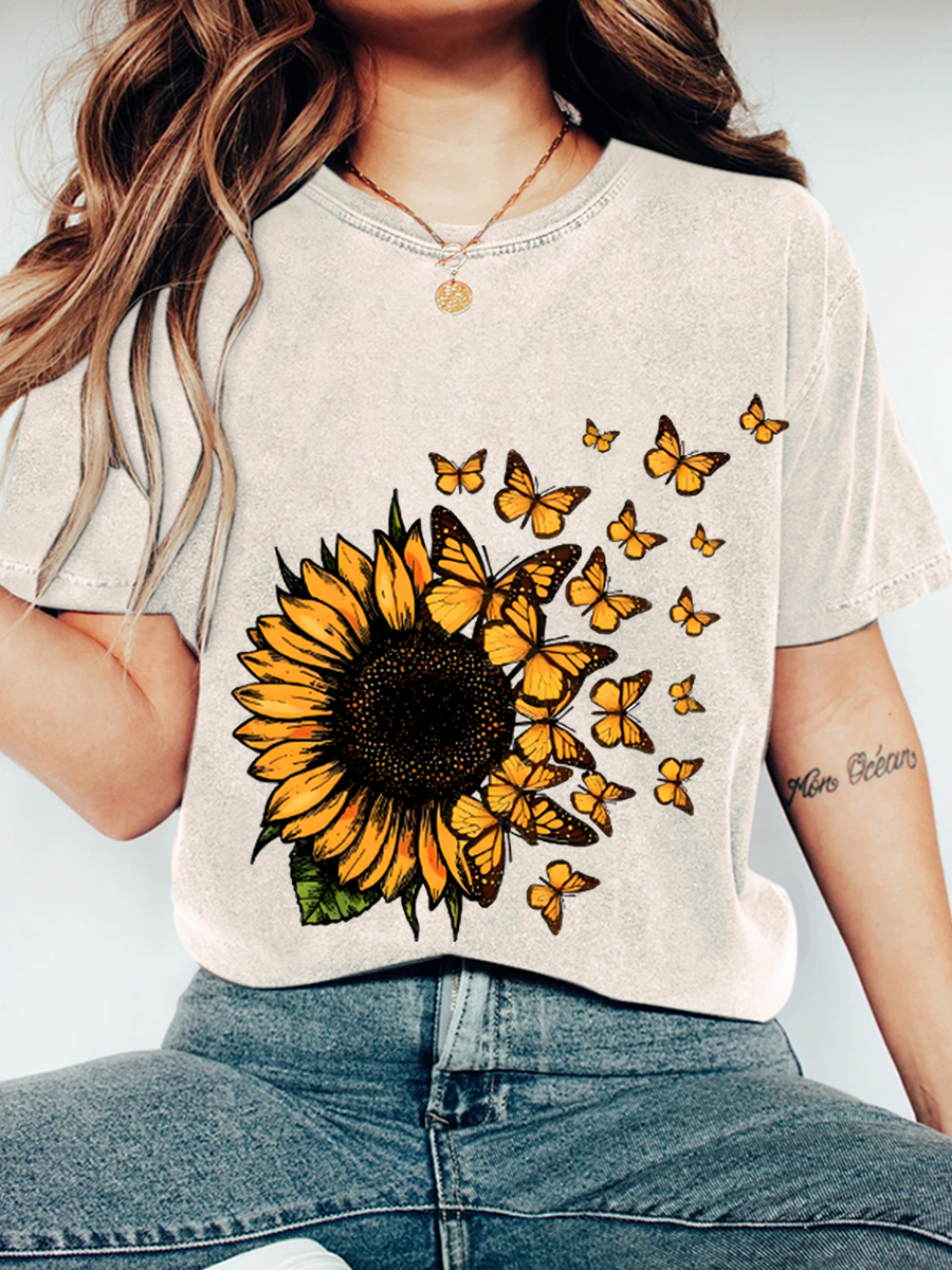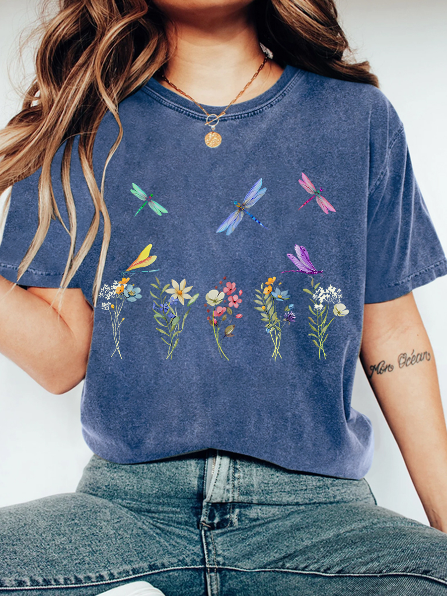 Women's Dandelion Dog Cute Print Vintage Washed T-shirt