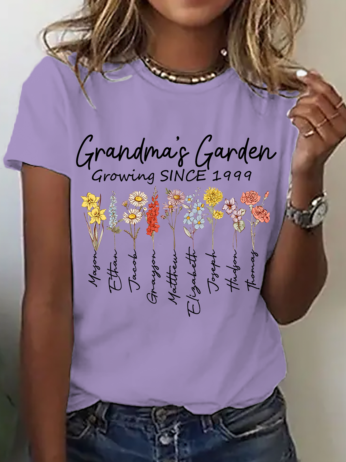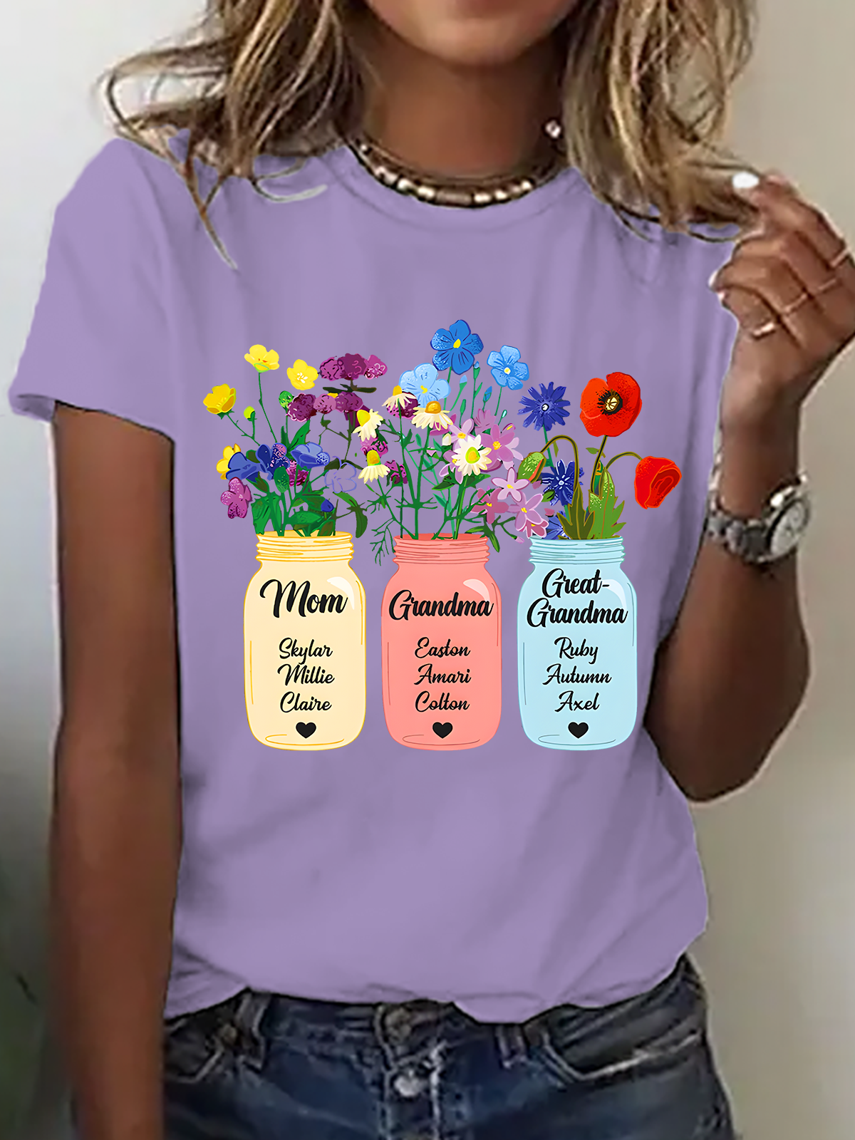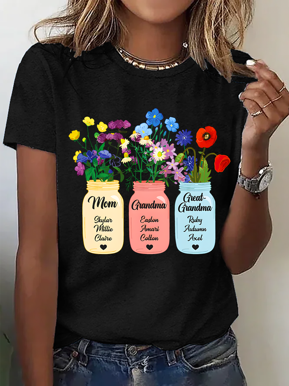 Personalized Grandma Flower Jar Cotton T-Shirt