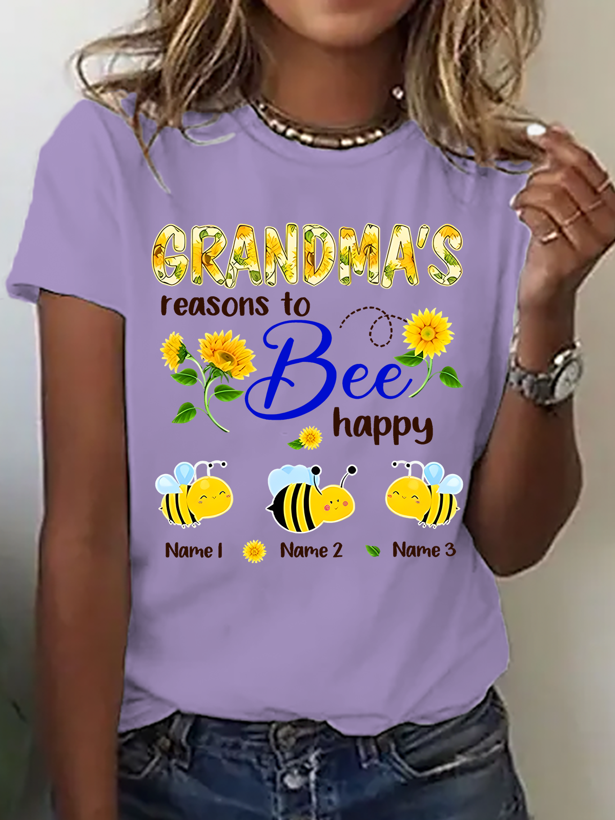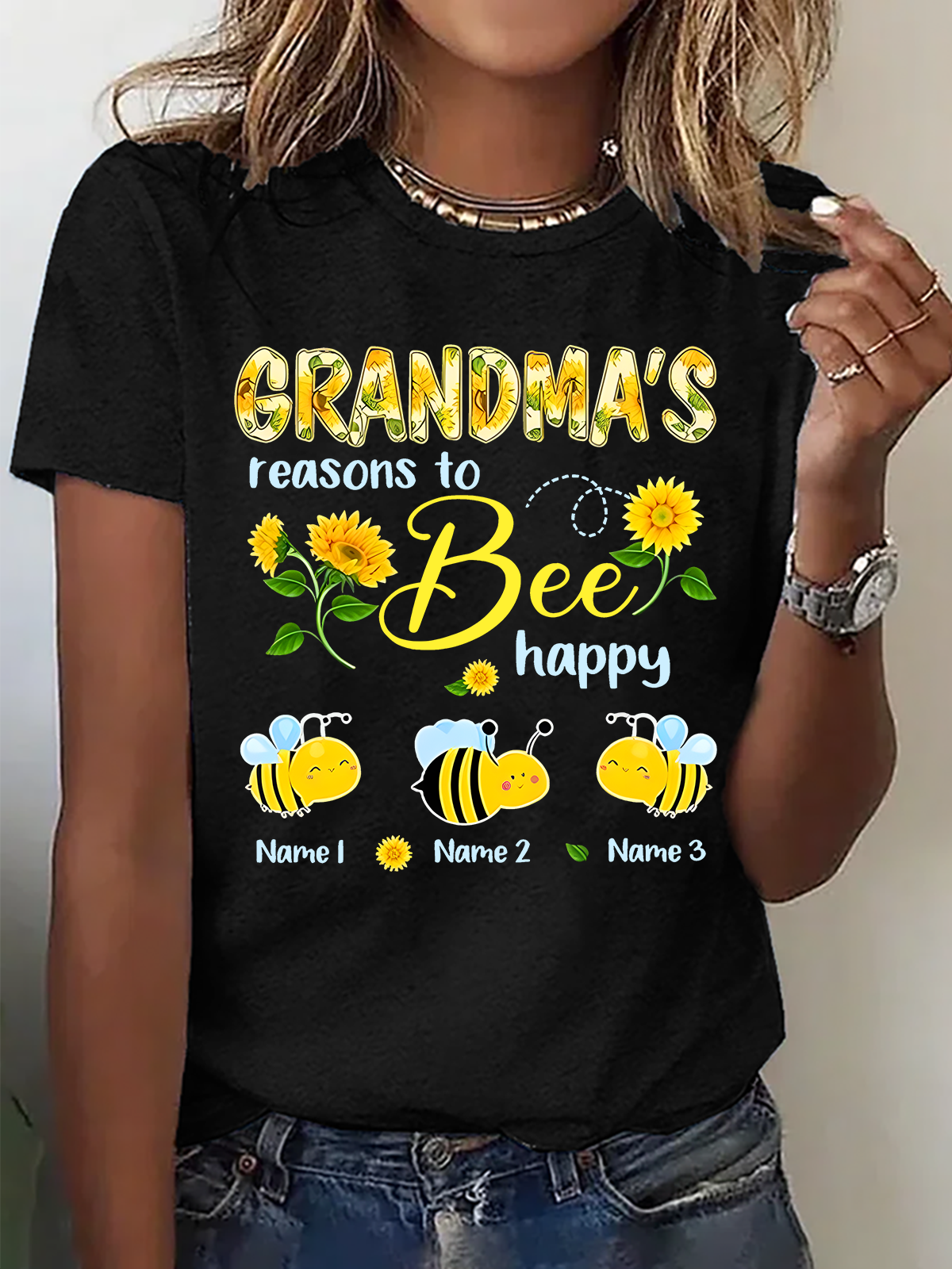 Personalized Grandma With Grandkids Sunflower Bee Butterfly Cotton T-Shirt