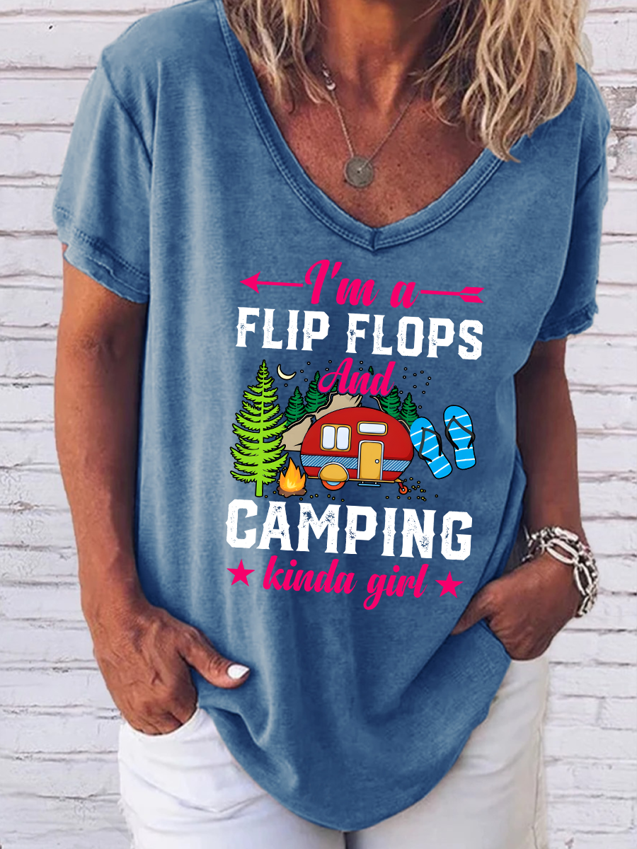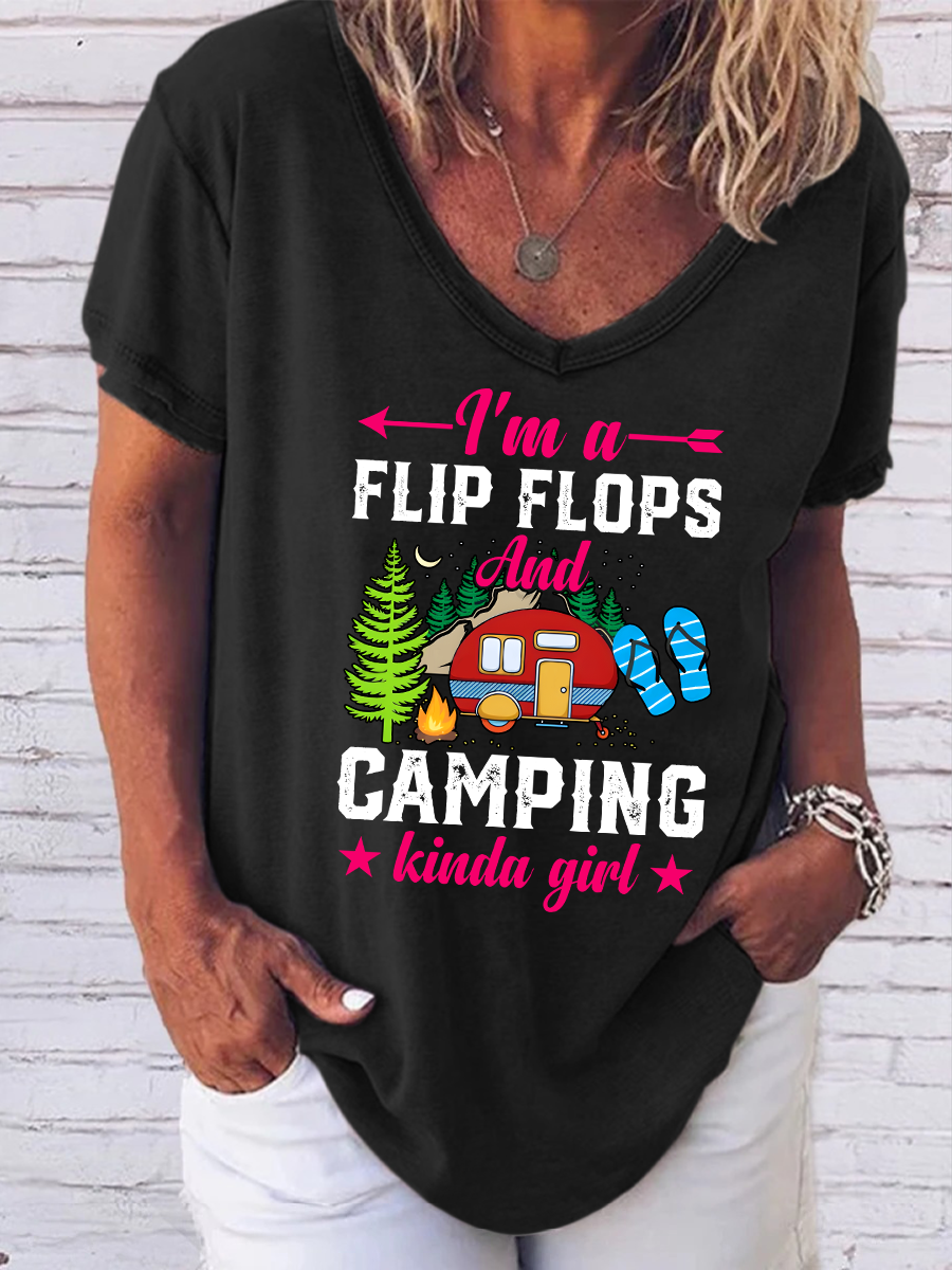I'm a Flip Flop and Camping Kinda Girl V Neck Casual T-Shirt