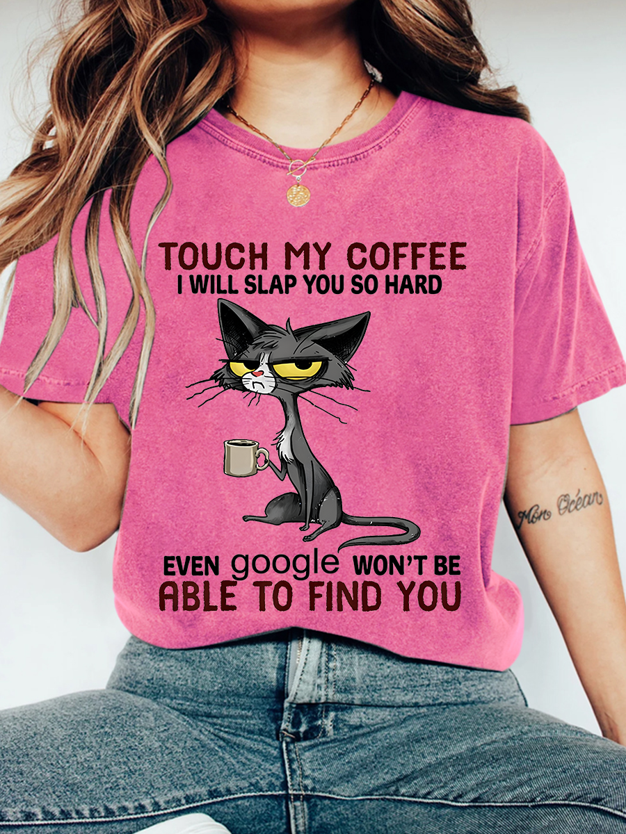 TOUCH MY COFFEE I WILL SLAP YOU SO HARD Print Wash T-Shirt