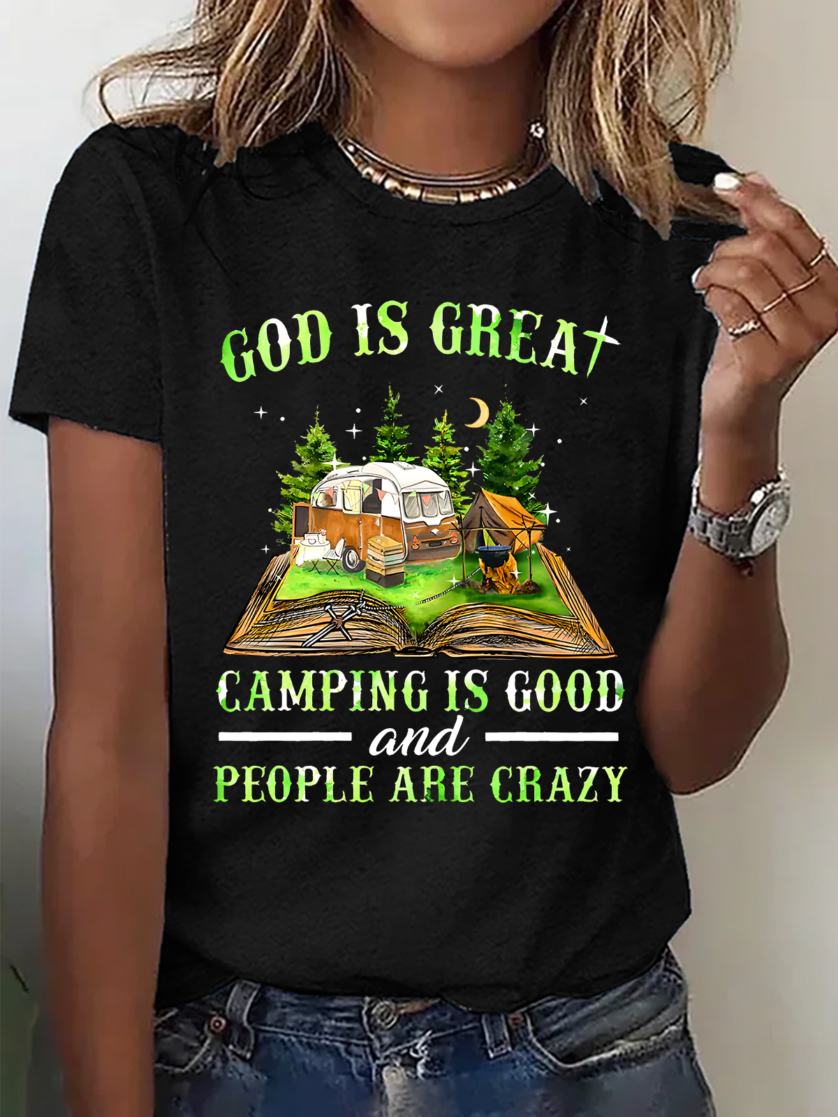 God Is Great Camping Shirt – Funny Camping T-Shirt Cotton T-Shirt