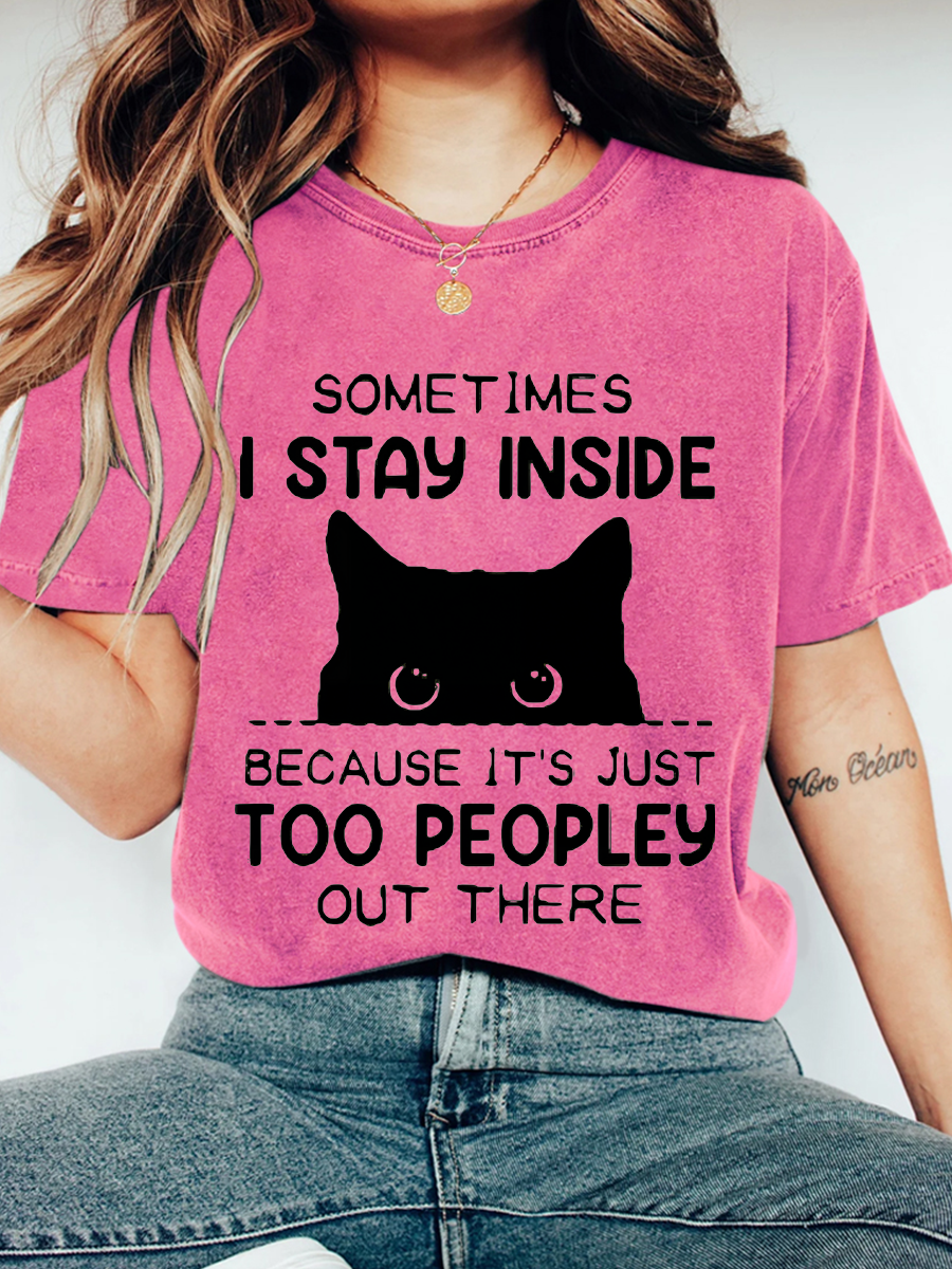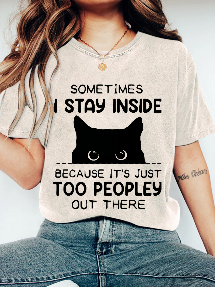 SOMETIMES I STAY INSIDE BECAUSE IT'S JUST TOO PEOPLEY OUT THERE Wash Print T-Shirt
