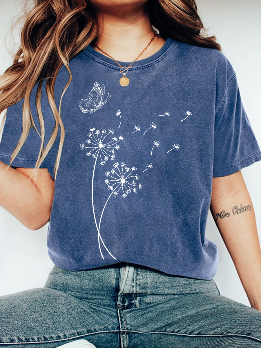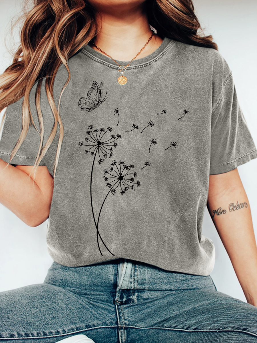 Dandelion Wild Flower Print Wash T-Shirt
