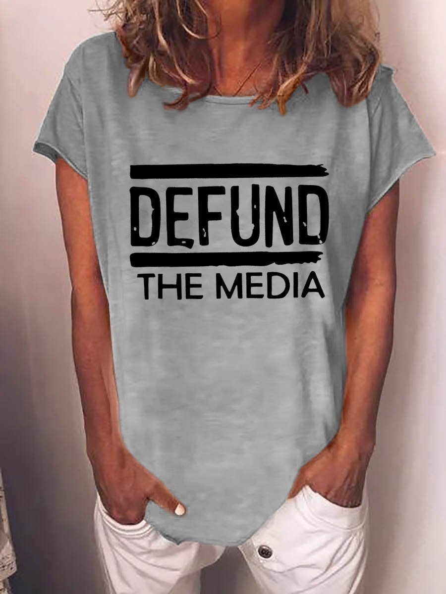 Defund The Media Graphic Round Neck Short Sleeve Tee