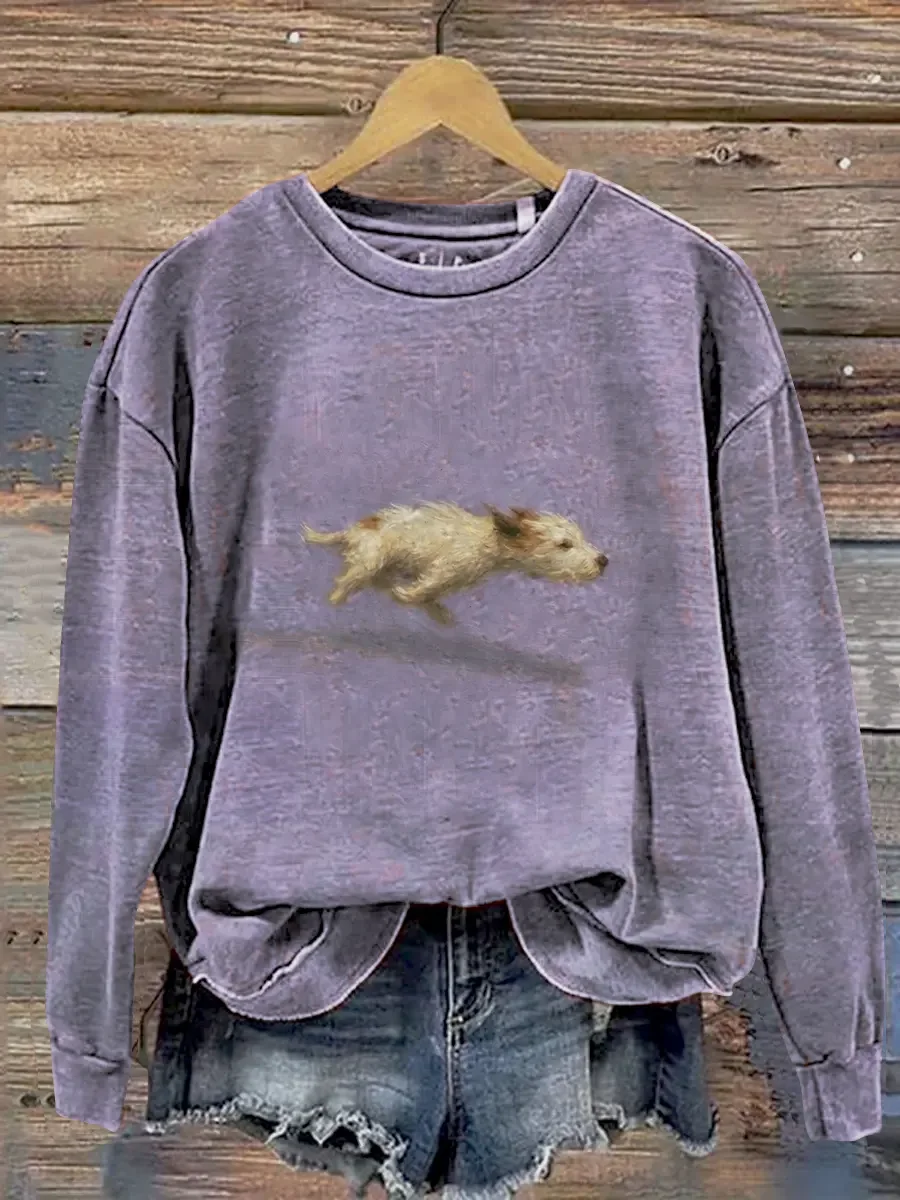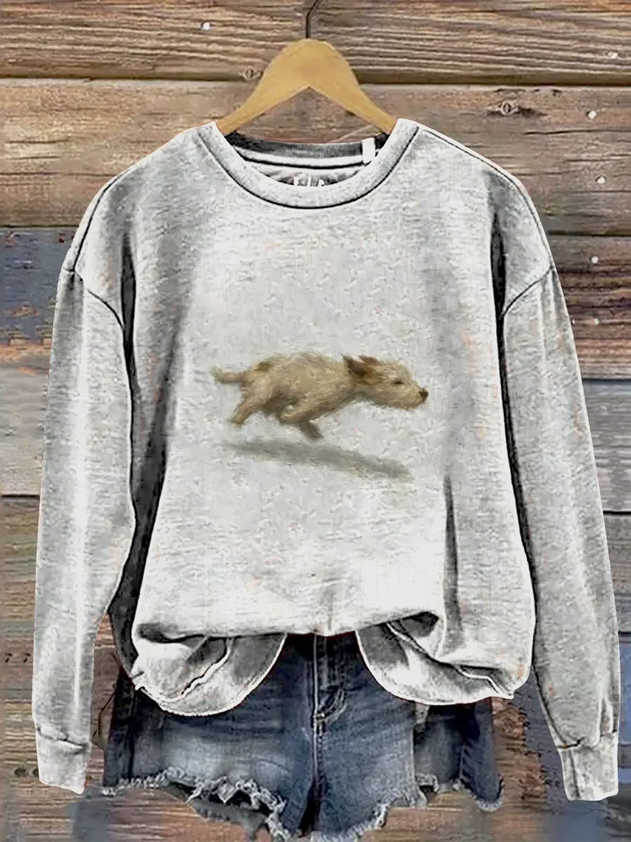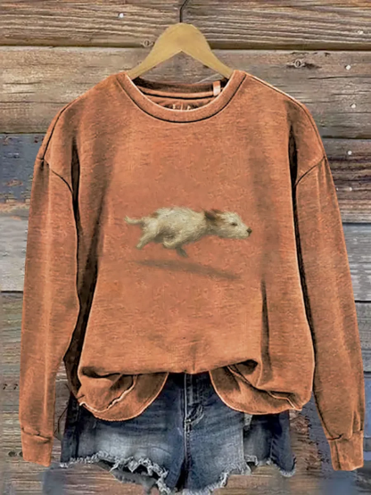 Funny Cute Running Dog Art Print Casual Sweatshirt