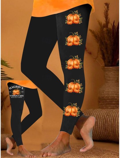 Halloween Women's Casual Slim Fit Leggings Pumpkin Pattern