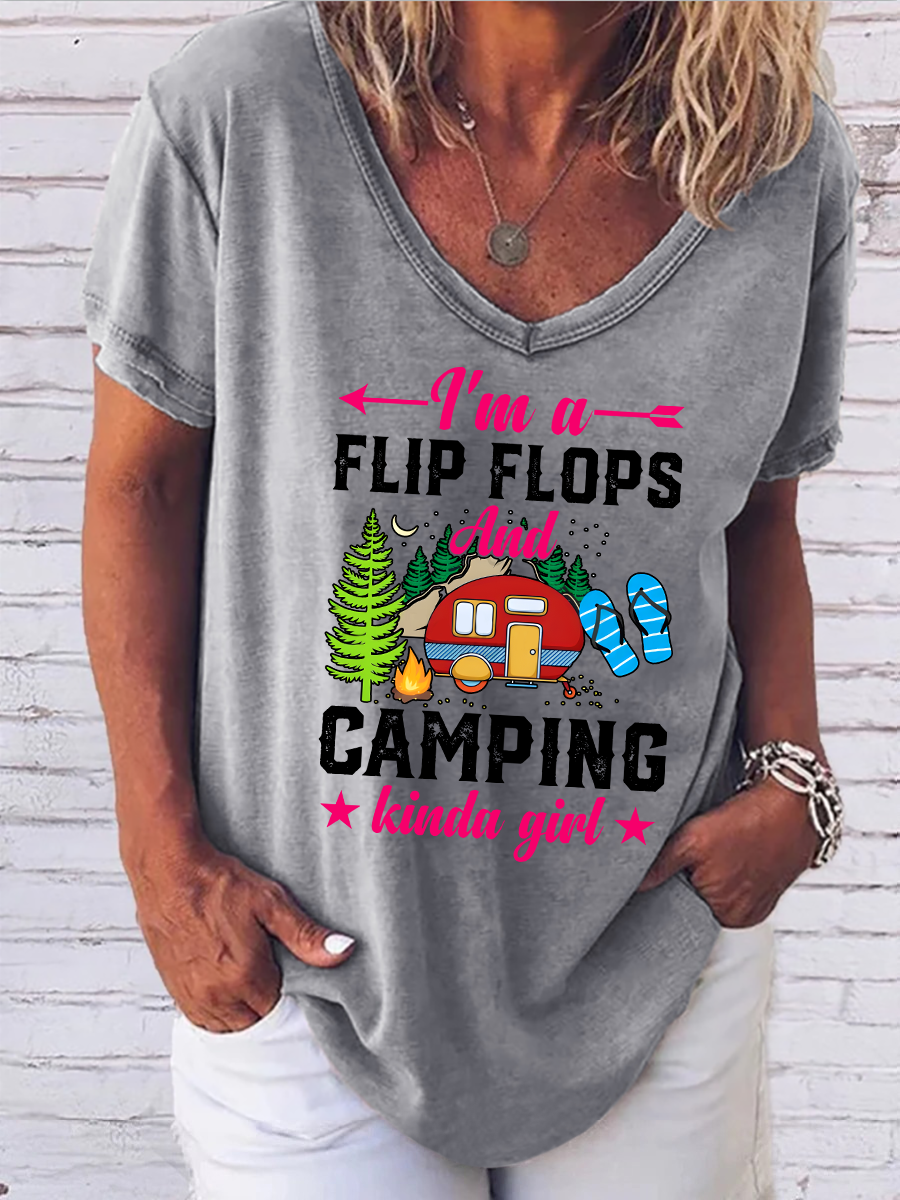 I'm a Flip Flop and Camping Kinda Girl V Neck Casual T-Shirt