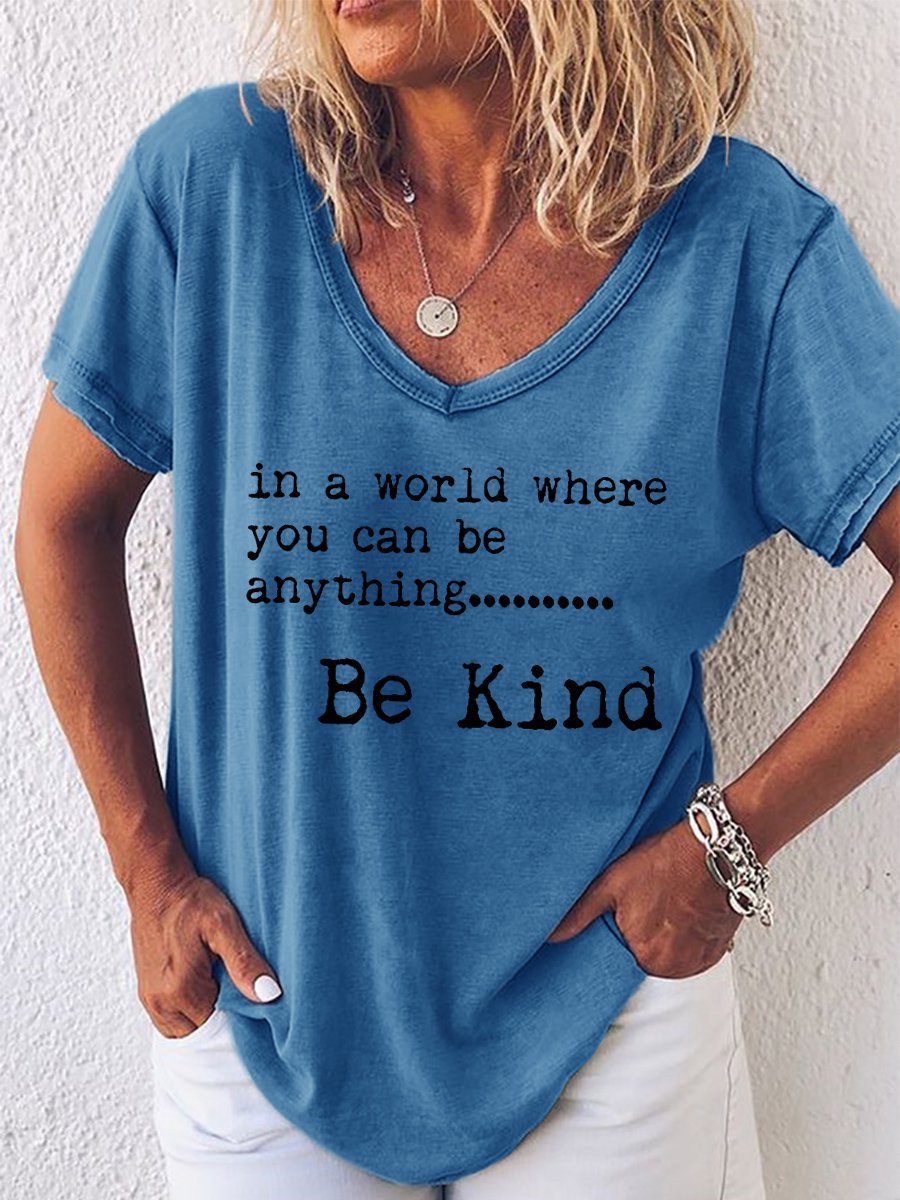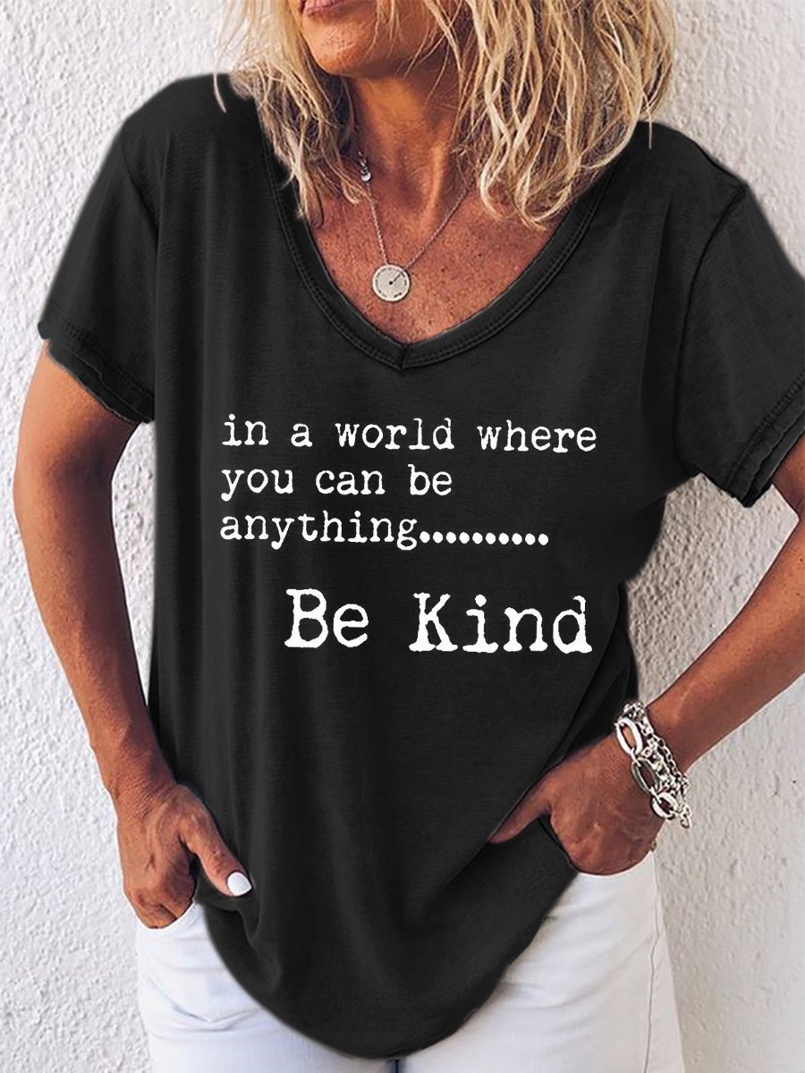 In A World Where You Can Be Anything Be Kind V Neck Tee