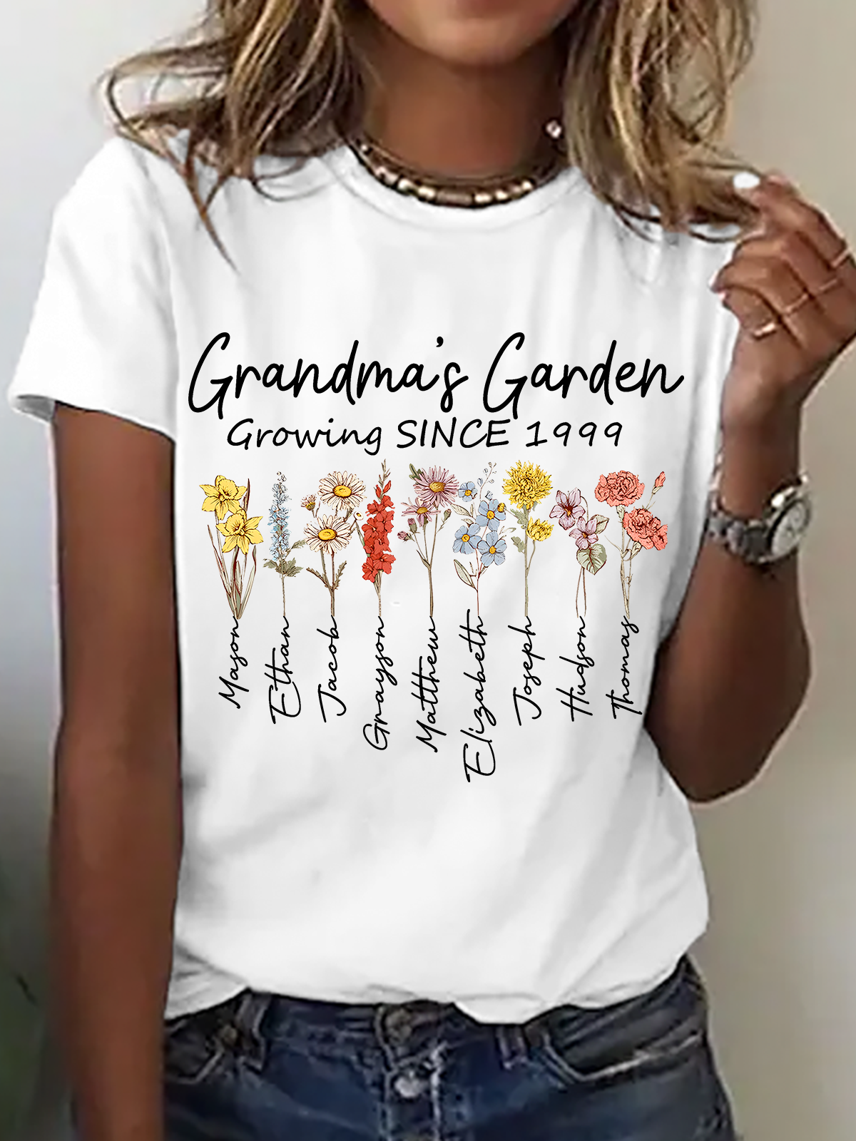 Personalized Grandma's Garden Cotton T-Shirt