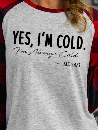 Women I’m Cold letters Crew Neck Casual Text Letters Top