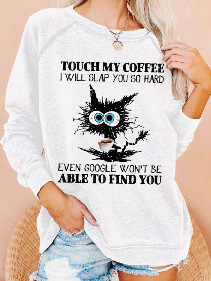 Womens Funny Coffee Crazy Black Cat Crew Neck Sweatshirt