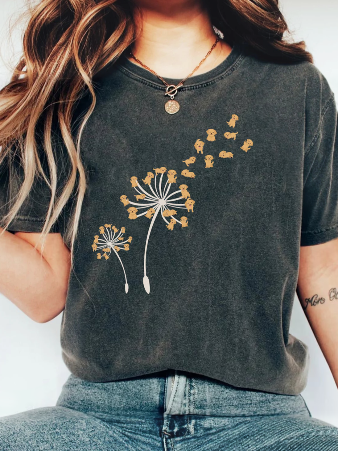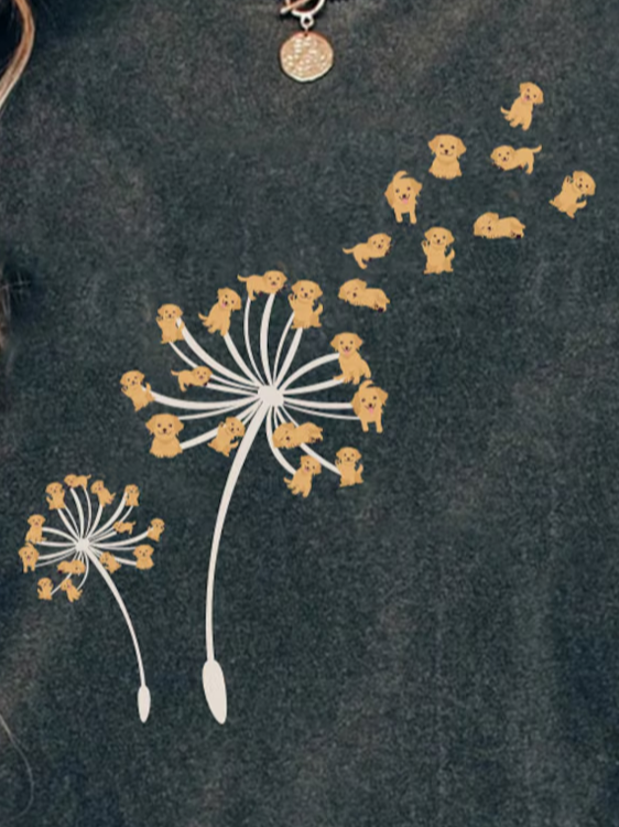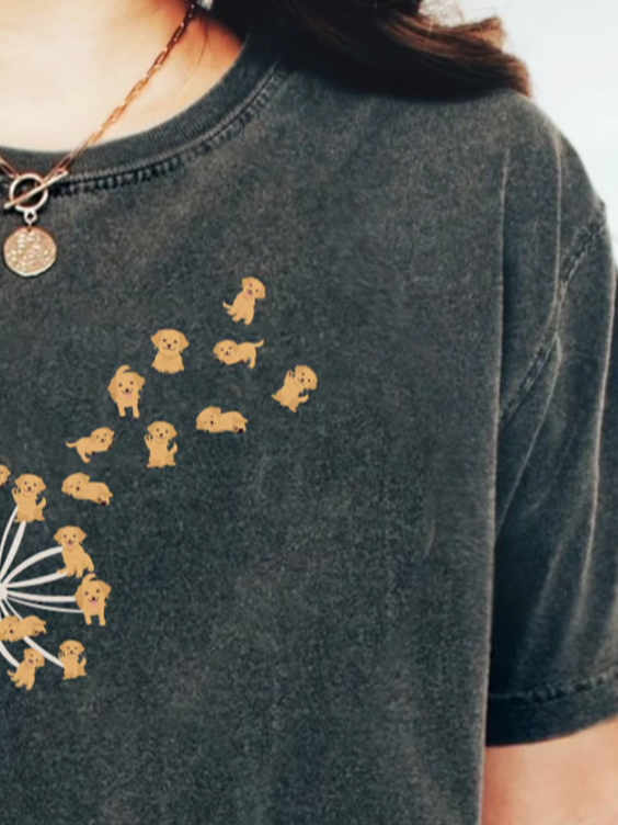 Women's Dandelion Dog Cute Print Vintage Washed T-shirt