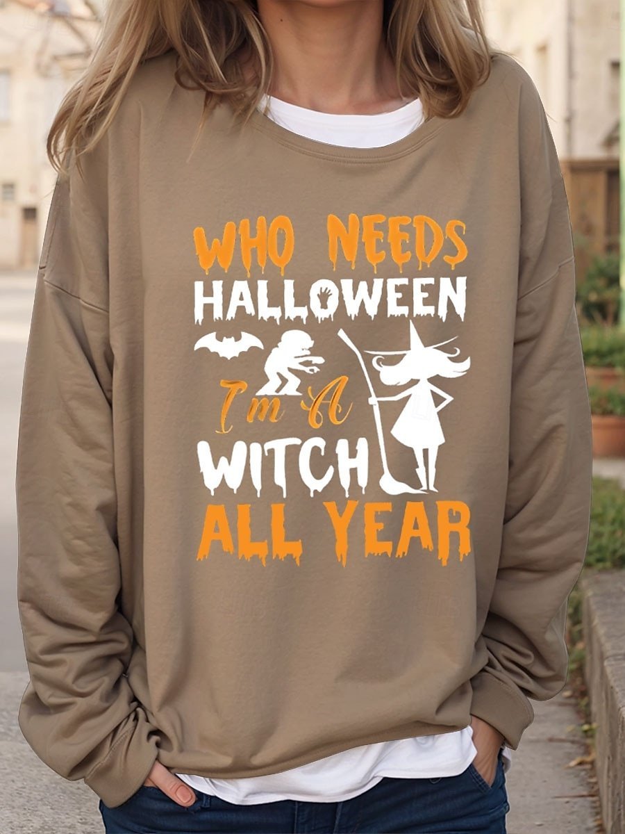 Women's Halloween Letter Pattern Round Neck Drop Shoulder Sleeve Casual Sweatshirt Regular Top