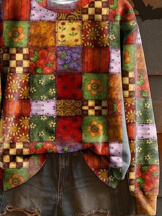 Women's Halloween Print Casual Long Sleeve Crew Neck Sweatshirt