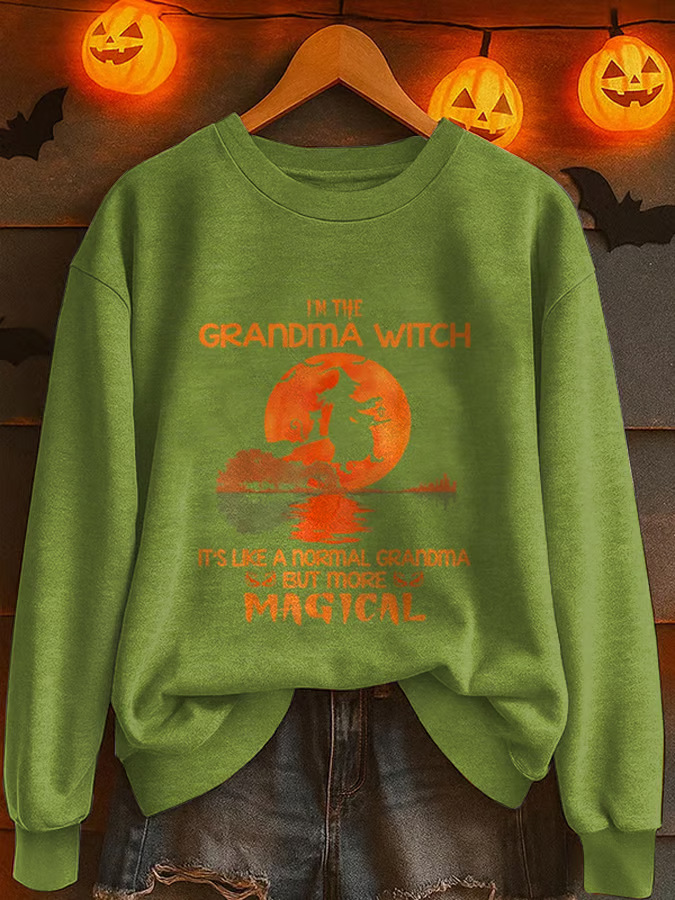 Women's Halloween Print “I'm A Grandma Witch It's Like A Normal Grandma But More Magical” Crew Neck Sweatshirt