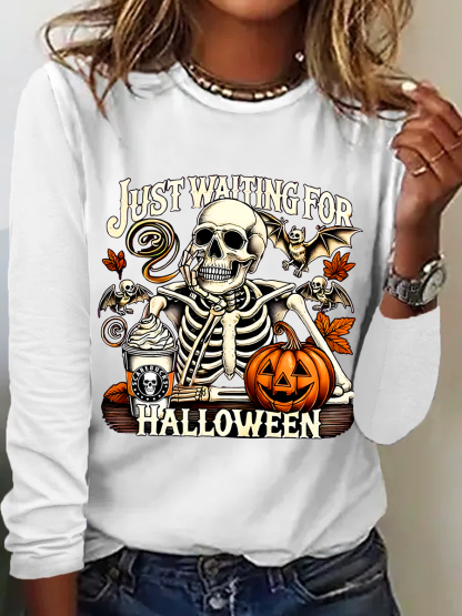 Women's Just Waiting for Halloween Funny Long Sleeve T-Shirt