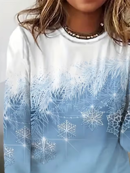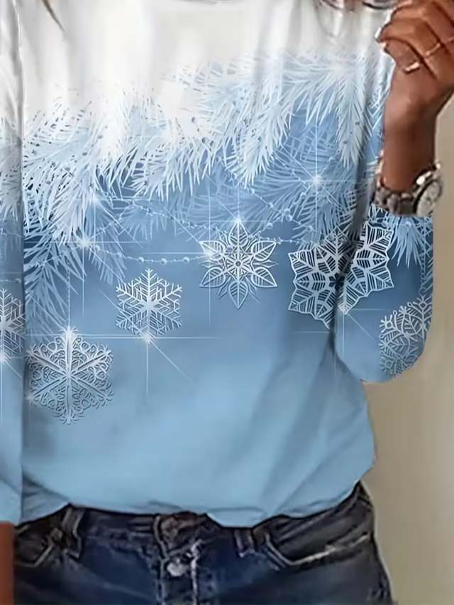 Women's Long Sleeve T-shirt Spring/Fall Blue Christmas Printing Jersey Crew Neck Daily Going Out Casual Top