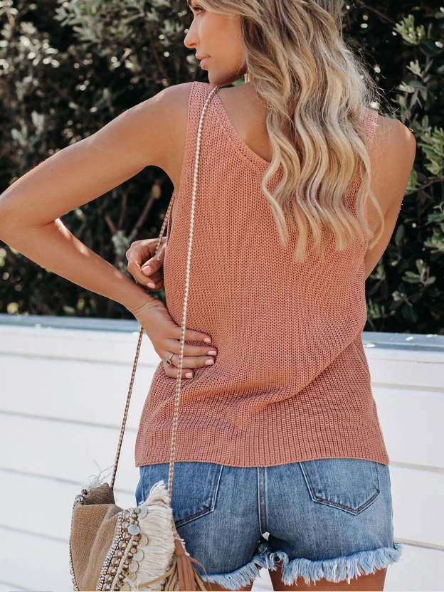 Women's Sleeveless Tank Top Summer Gray Plain Hollow Out Cotton V Neck Daily Going Out Simple Top