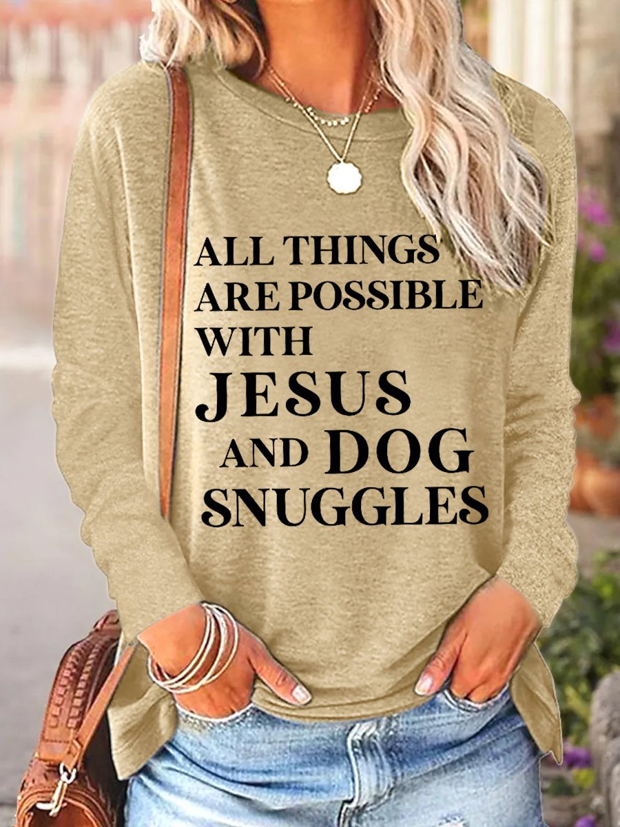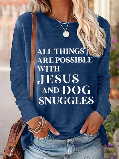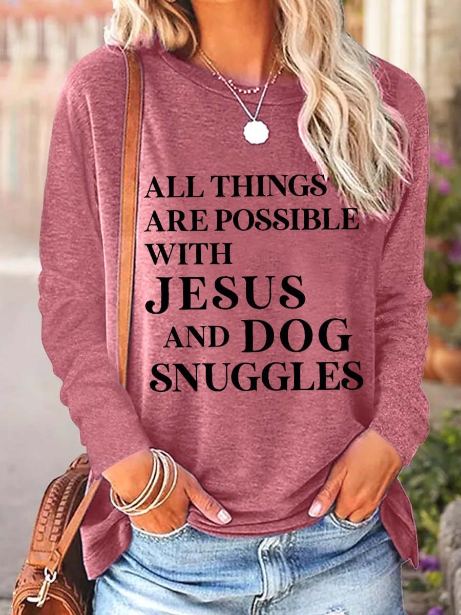 Women All Things Are Possible with Jesus Simple Long Sleeve Top