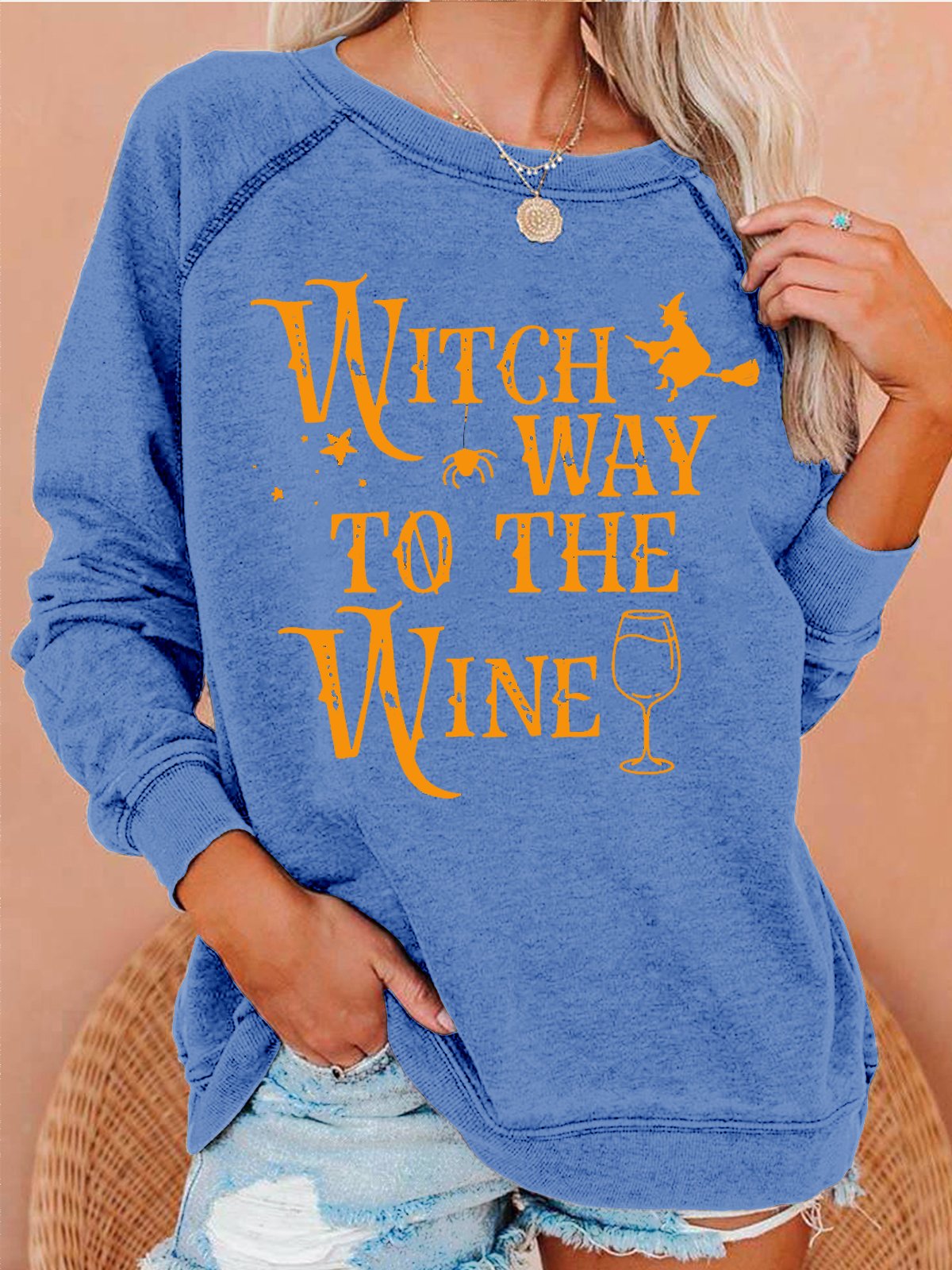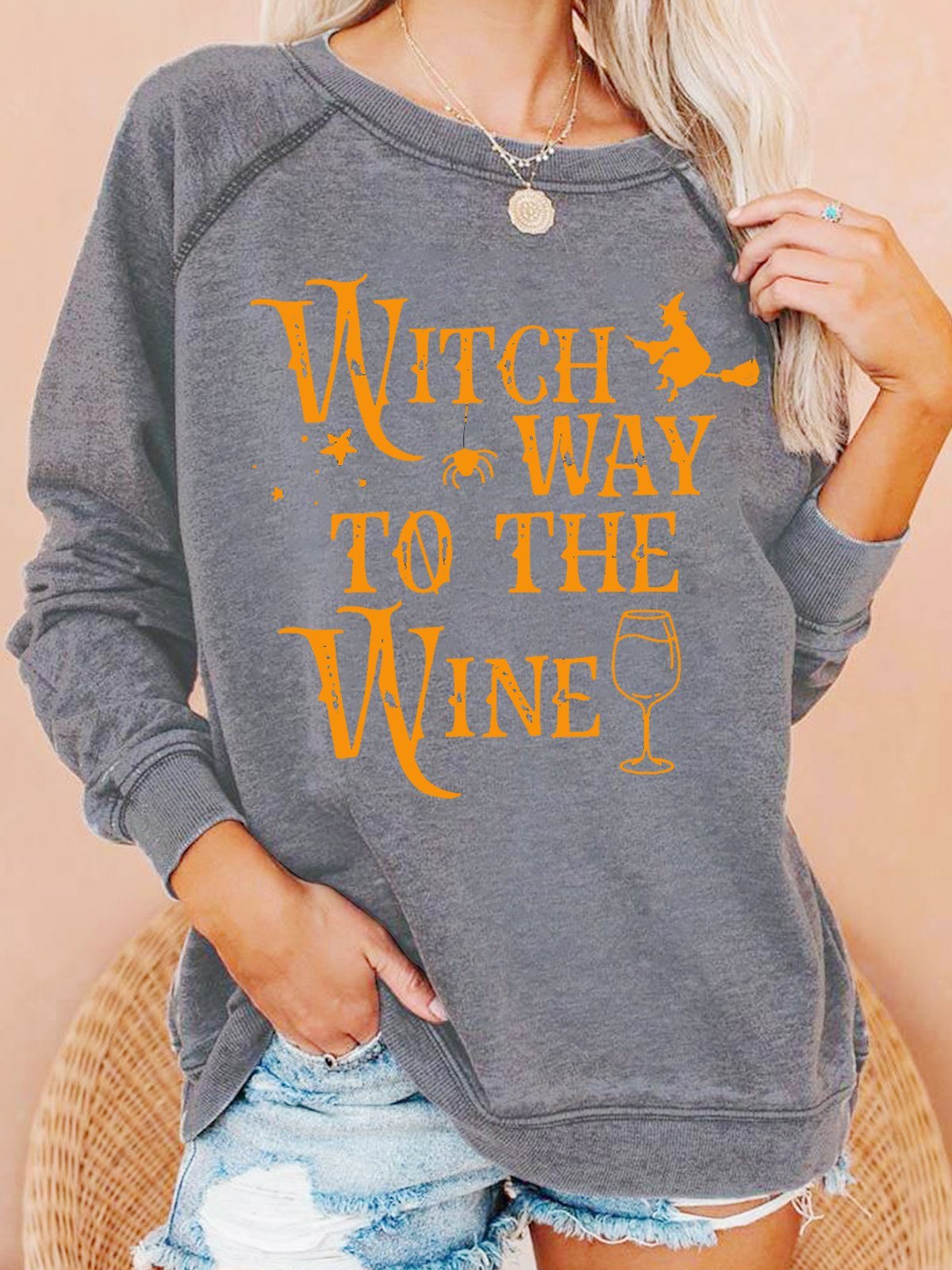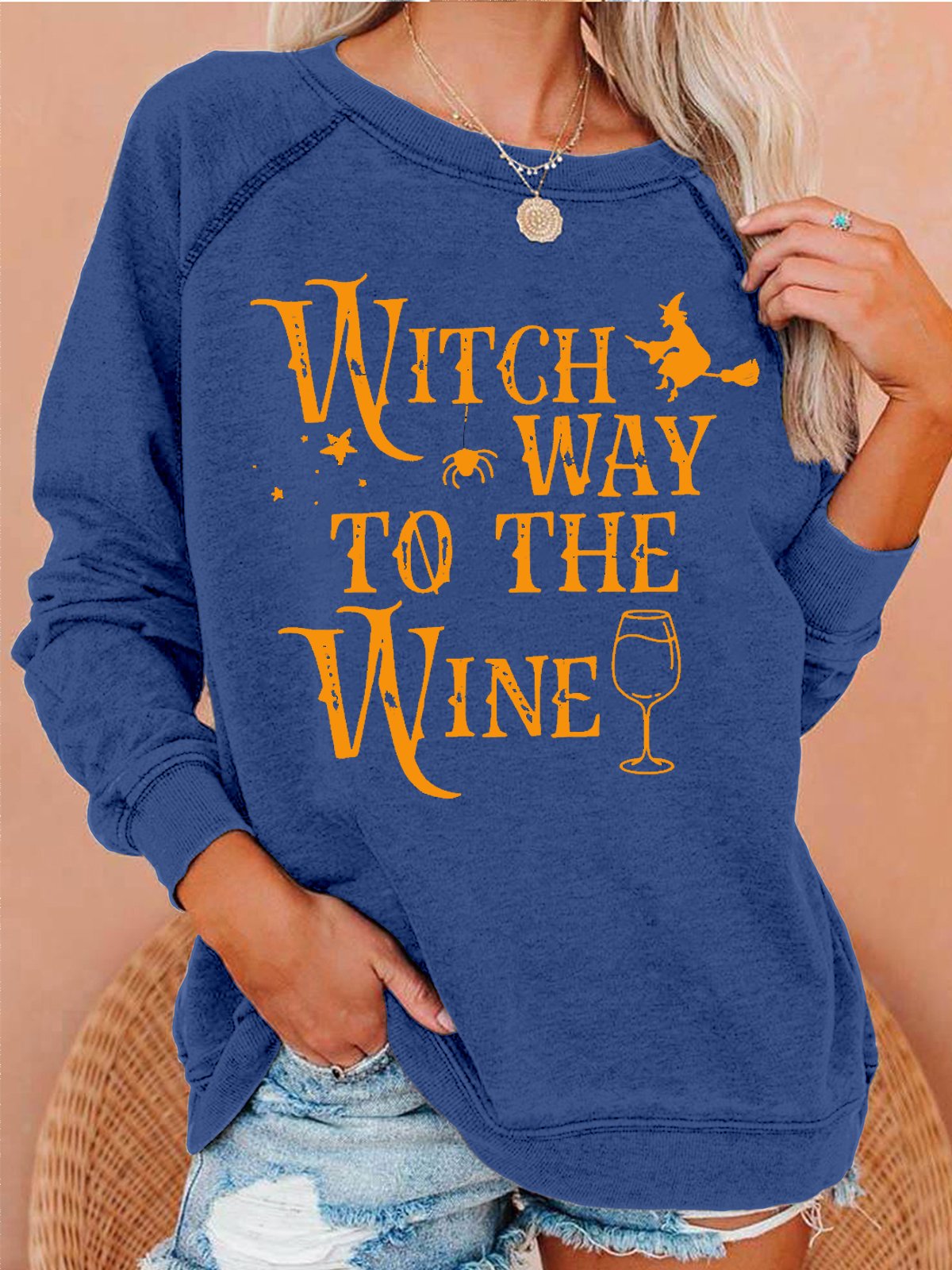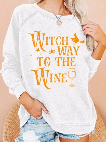 Womens Witch Way To The Wine Casual Helloween Sweatshirt