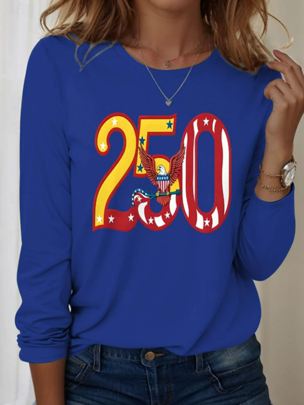 Women's USA 250th Anniversary Long Sleeve T-shirt Spring/Fall White America Flag Printing Jersey Crew Neck Daily Going Out Casual Top