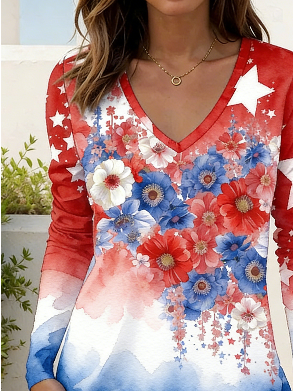 Independence Day Loose Elegant V Neck T-Shirt