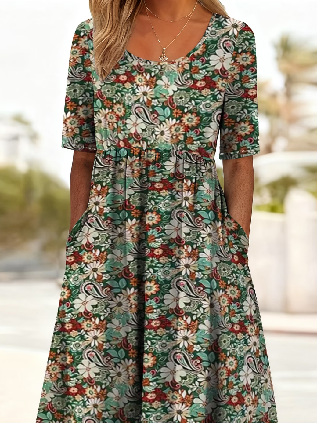 Women's Short Sleeve Summer As Picture Floral Printing Crew Neck Daily Going Out Casual Maxi H-Line Shift Dress Dress