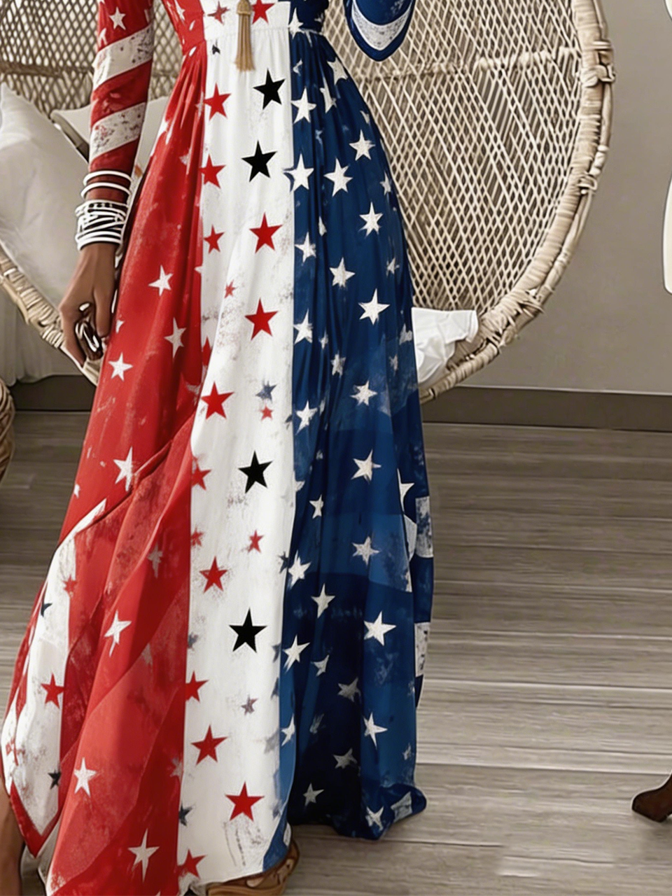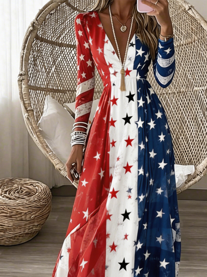Casual Geometric Regular Fit V Neck Dress With No