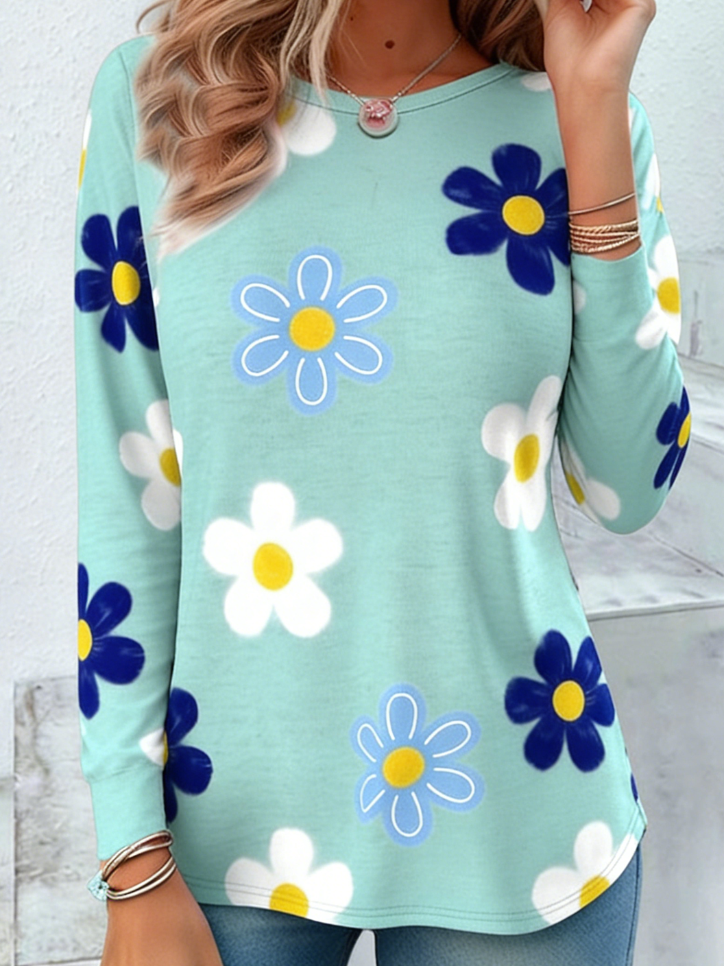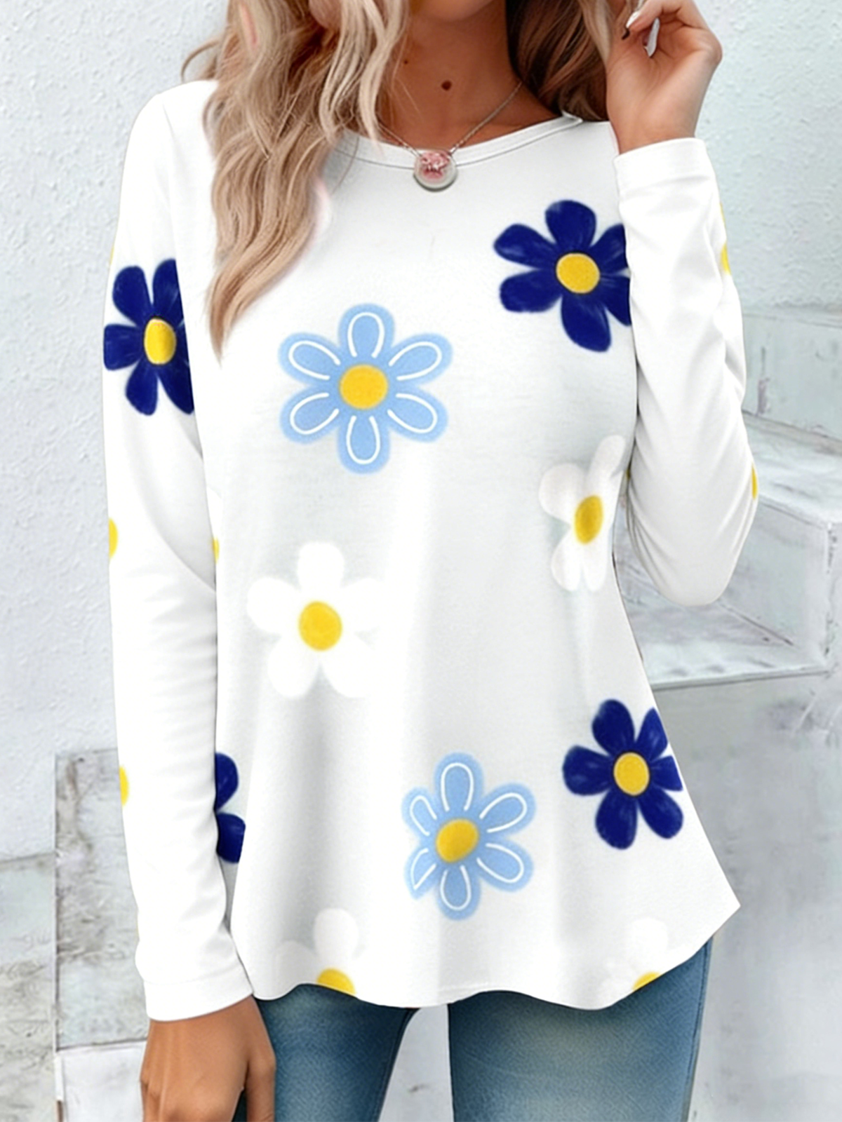 Casual Jersey Floral Crew Neck T-Shirt