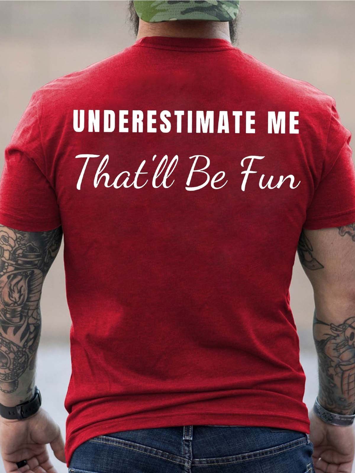 Men Underestimate Me That’ll Be Fun Cotton Crew Neck Text Letters T-Shirt