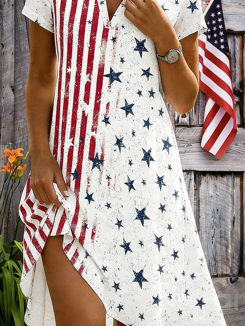 Independence Day Elegant Loose Shirt Dress With No