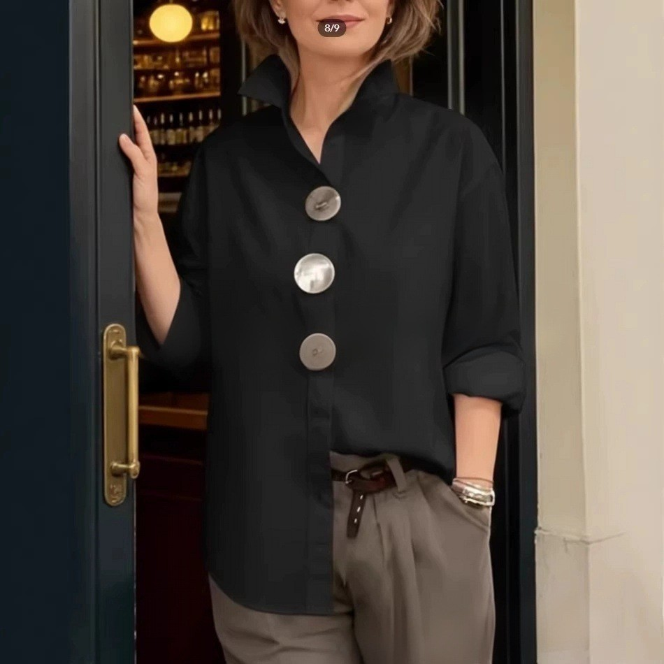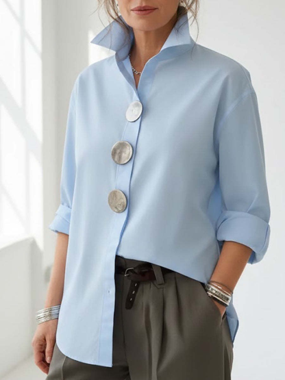 Plain Shirt Collar Metal Button Commuting Going Out Casual Shirt