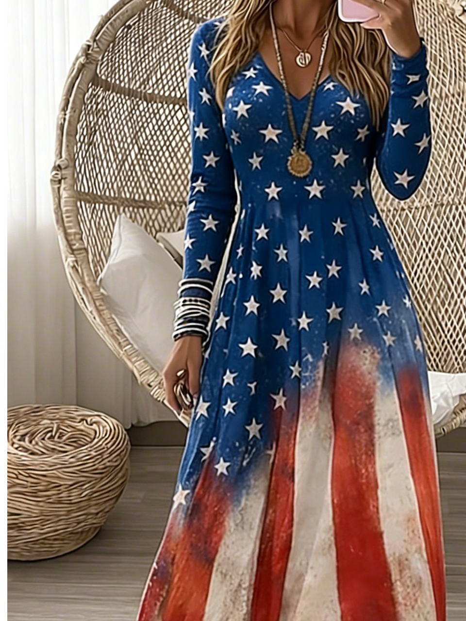 Regular Fit V Neck Vintage Dress With No
